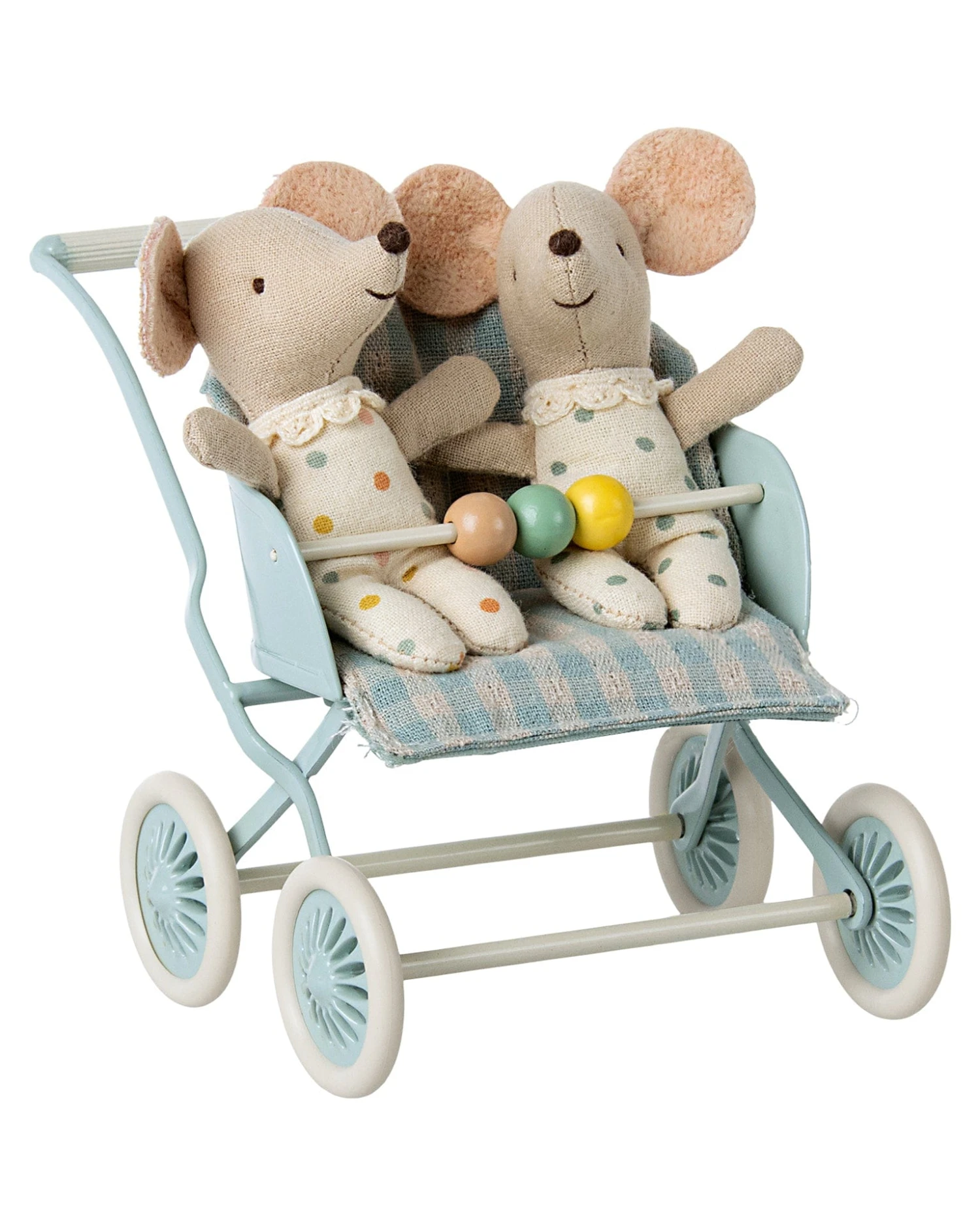 This Maileg stroller is perfect for mouse families with more than one baby. You can easily transport two or three babies. The seat can be positioned both ways depending on whether the babies like to look at mum and dad or are ready to discover the world.