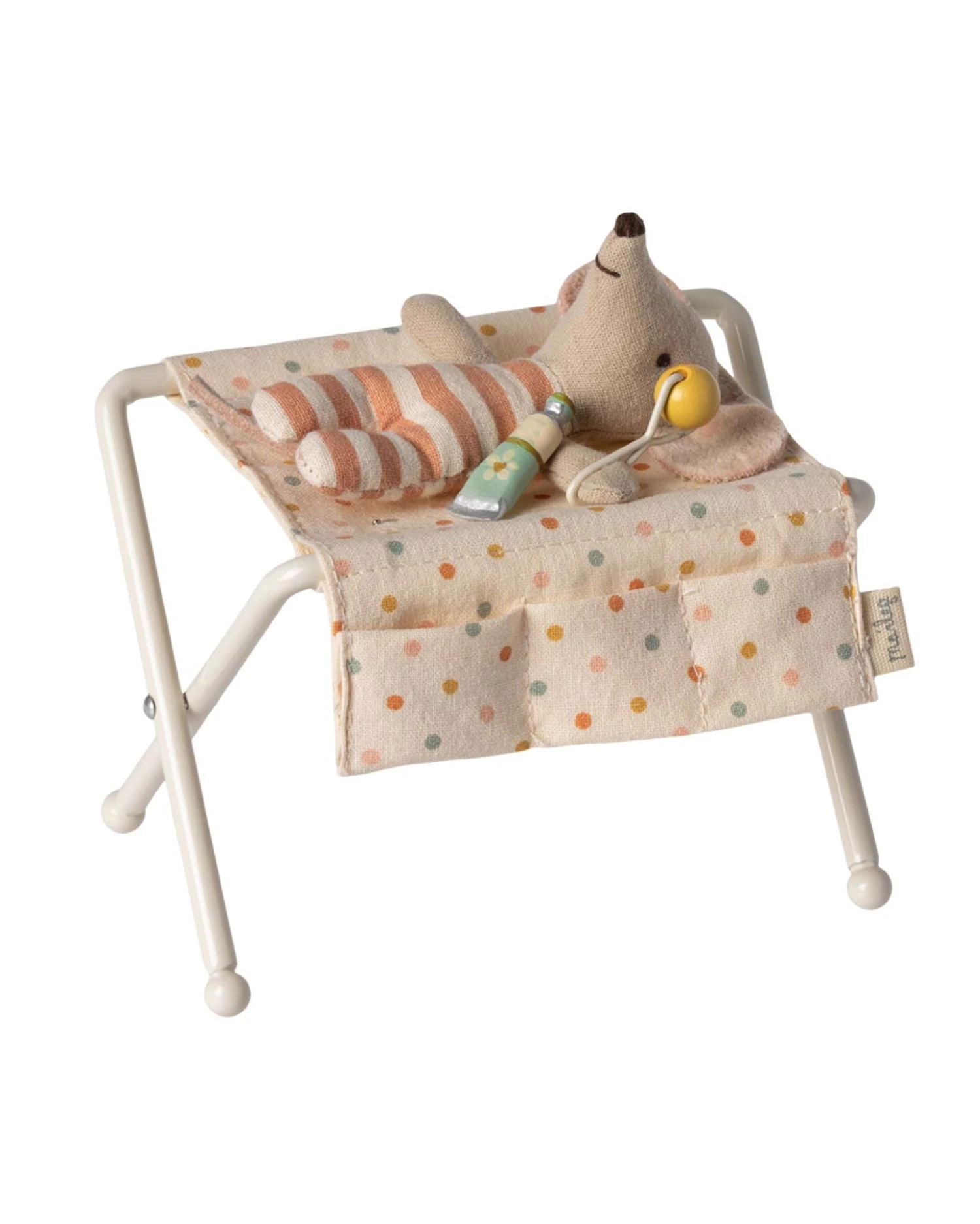All baby mice fit this size of nursery table perfectly. The table has practical pockets on the side in which you will find a small rattle and a tube of baby lotion, so all needed accessories are easy to reach when nursing the baby.