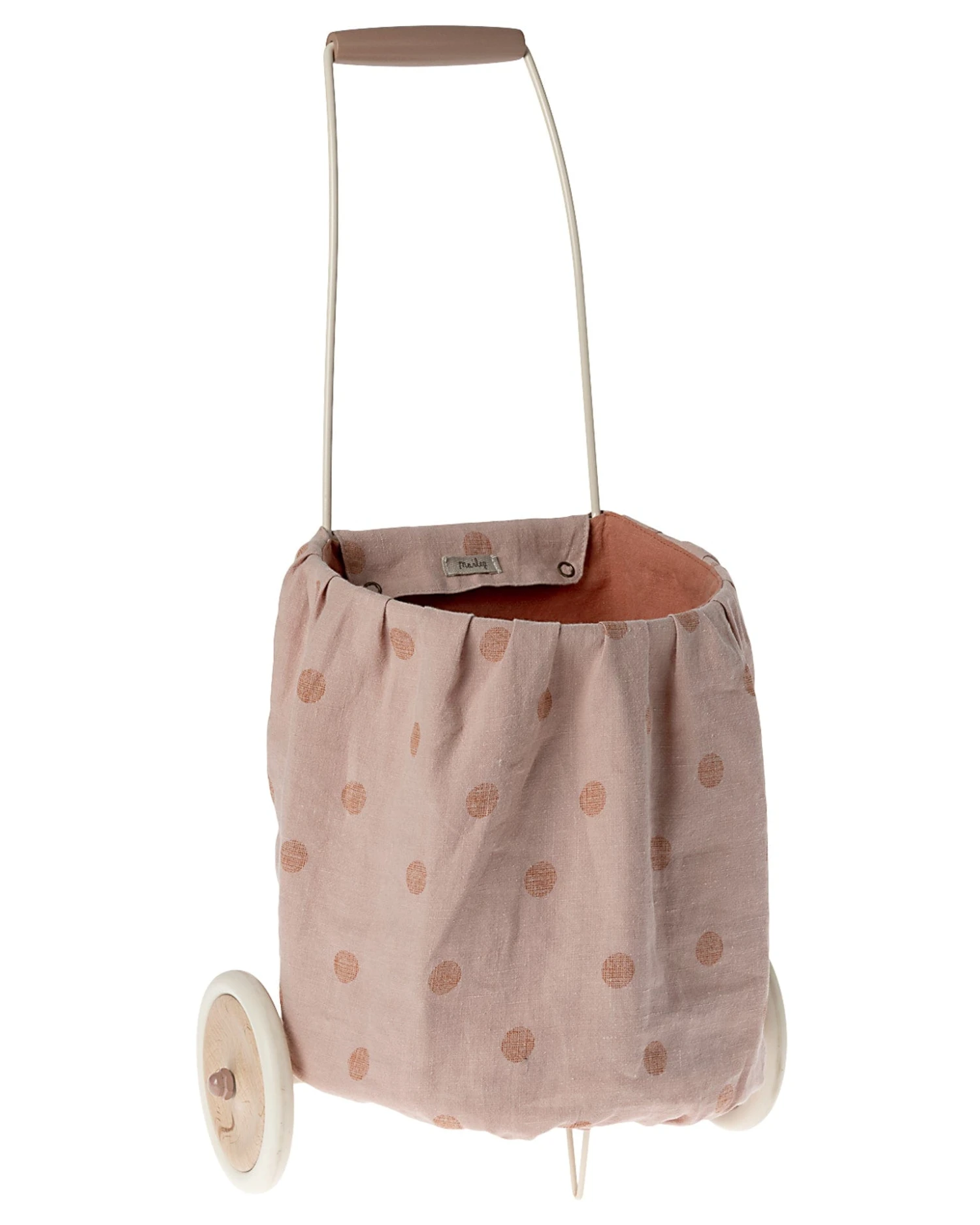 This trolley from Maileg is perfect for toting around your favorite mice and bunnies. Covered in a polka-dotted linen fabric, this trolley can also be used as storage.