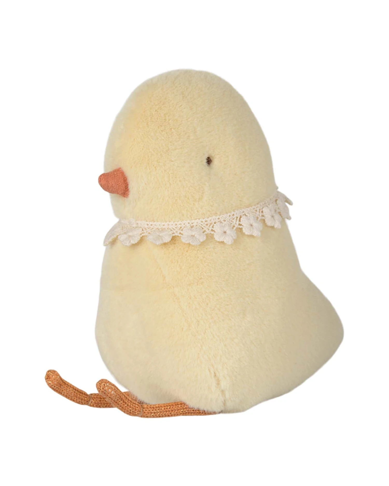 A sweet soft plush chicken with a vintage cotton collar around the neck, packed in a lovely metal egg with a beautiful print and a big soft bow on top – a perfect gift for the small ones.
