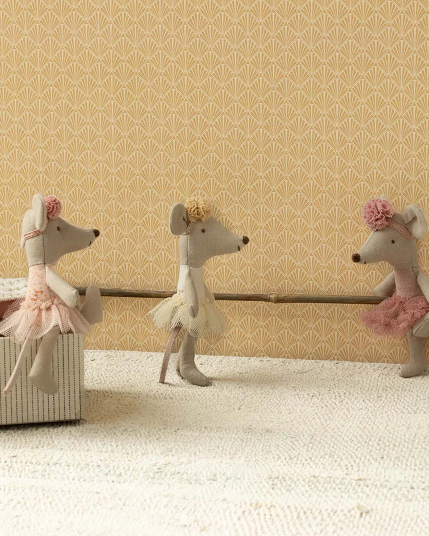 A little sister mouse dressed up like a graceful ballerina. She wears a beautiful off white colored tutu and a beautiful headband – ready for hours of dance.