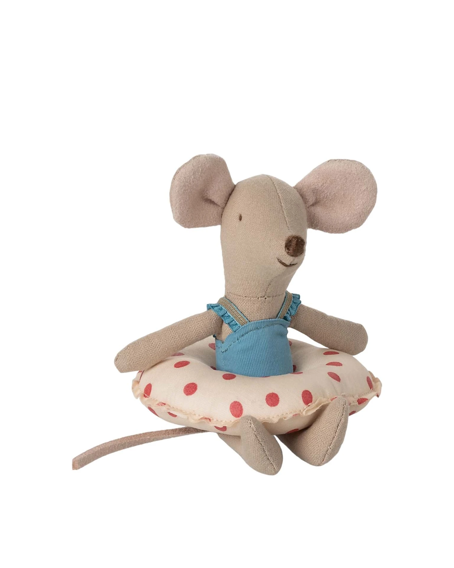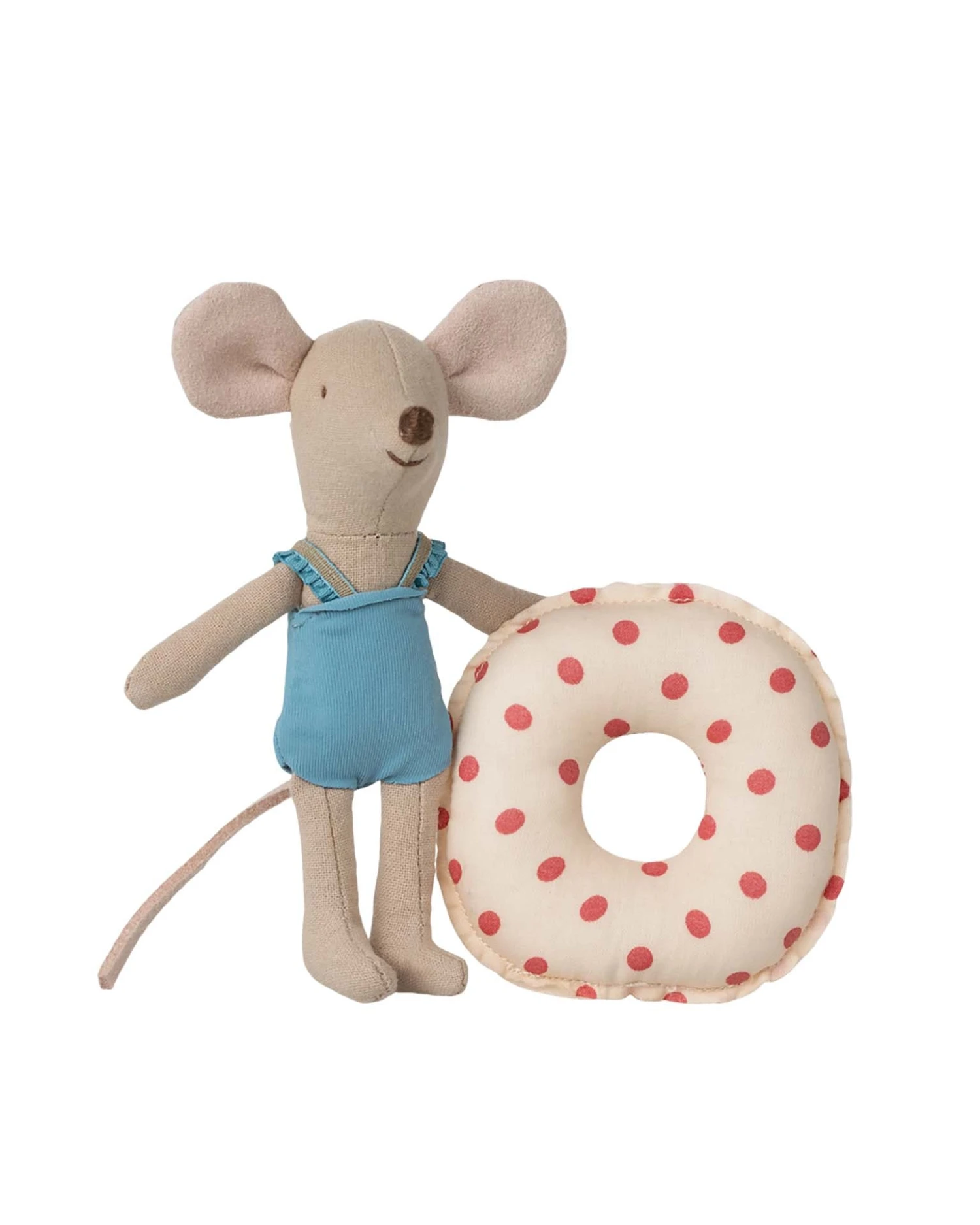 This summer set contains a little sister mouse dressed in a blue colored swimsuit with her red dotted float around the stomach. She is now ready for a safe swim in the sea.