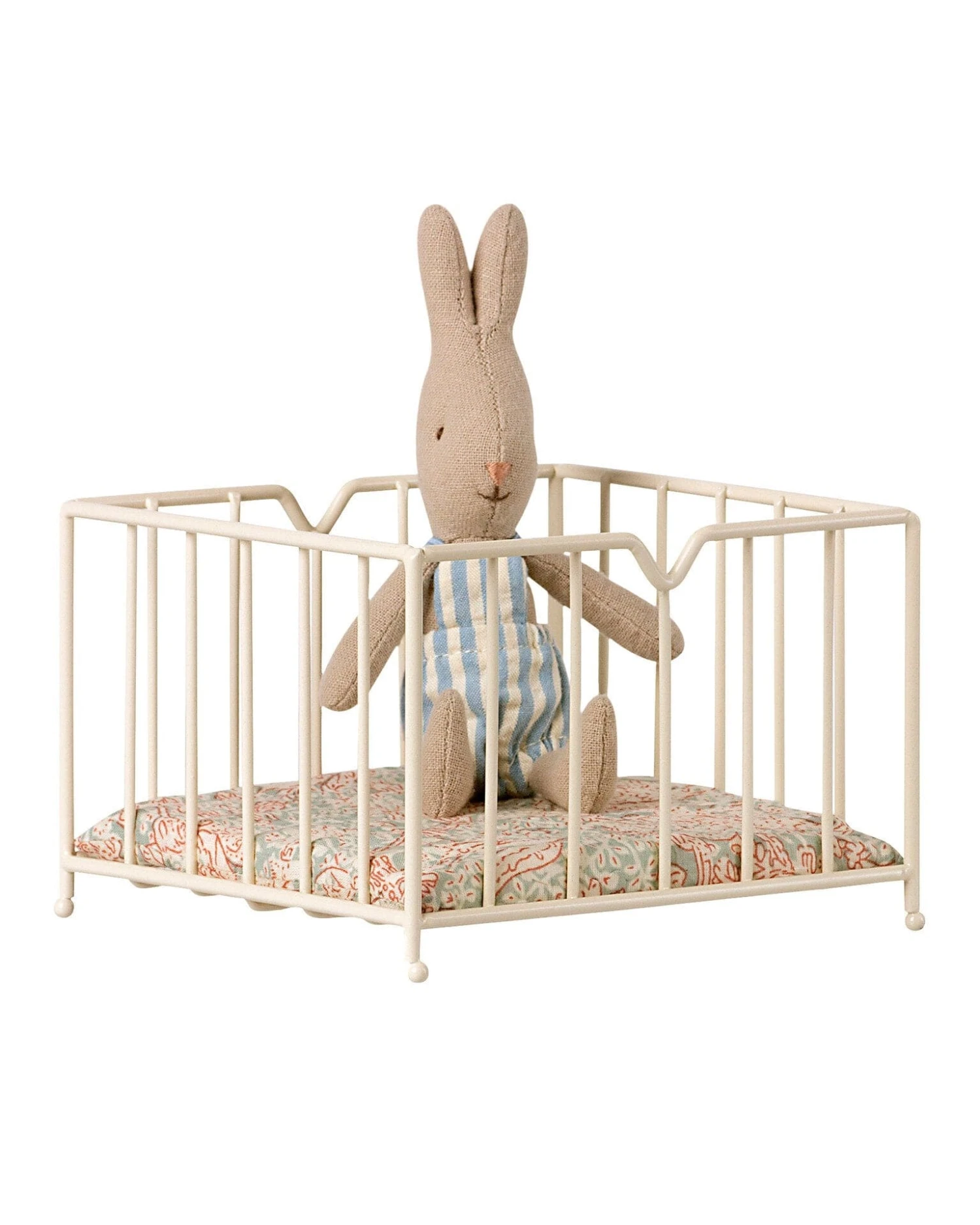 It’s naptime and your Micro-sized Maileg friends have the perfect spot to sleep. Featuring a colorful floral cushion, this sweet little playpen is sure to be a hit!