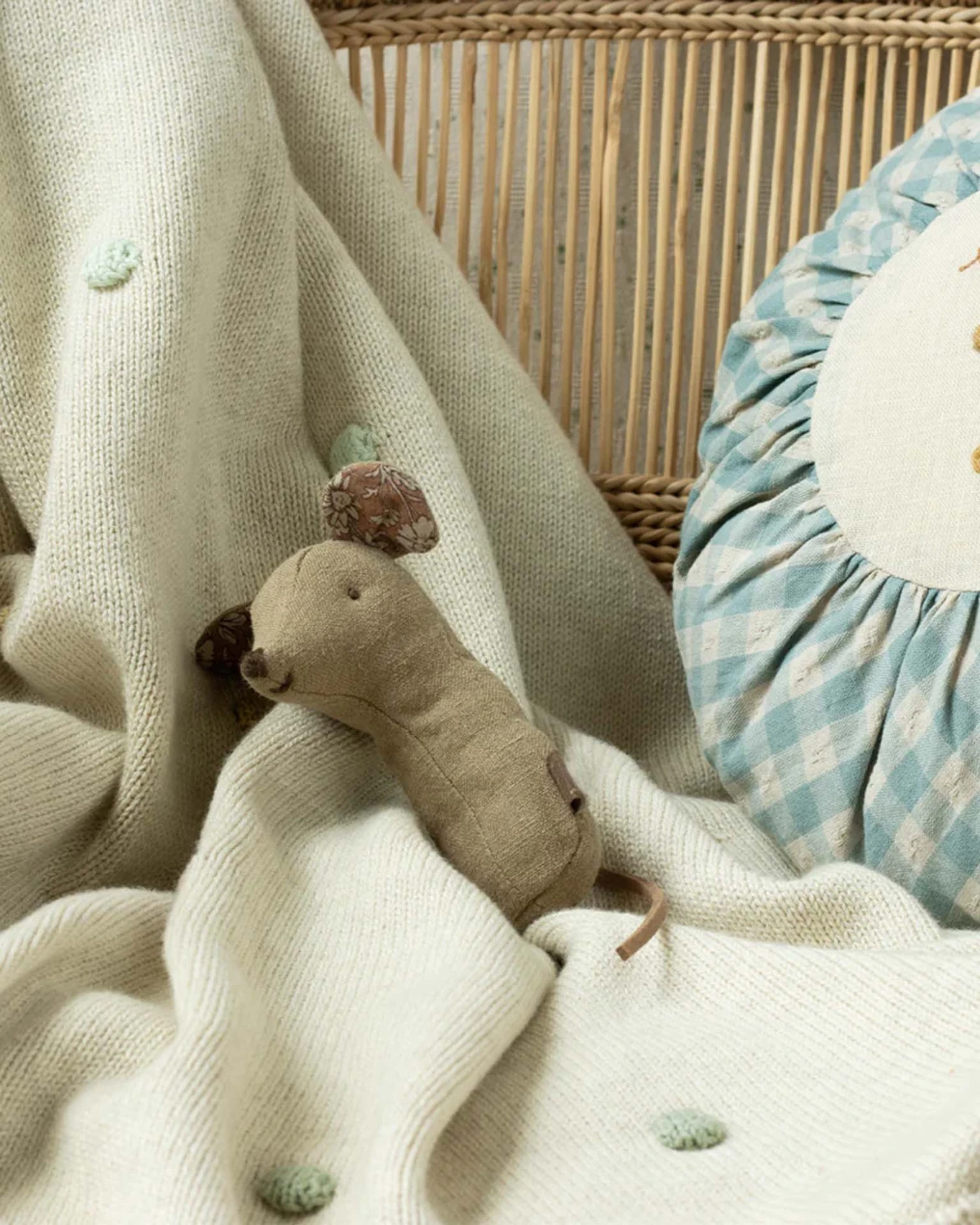 Lullaby friends is a collection of beautiful items for babies. This rattle is perfectly shaped for a small hand and has a stimulating rattle sound. It is made in soft fabrics with unique prints and packed in a beautiful gift box.