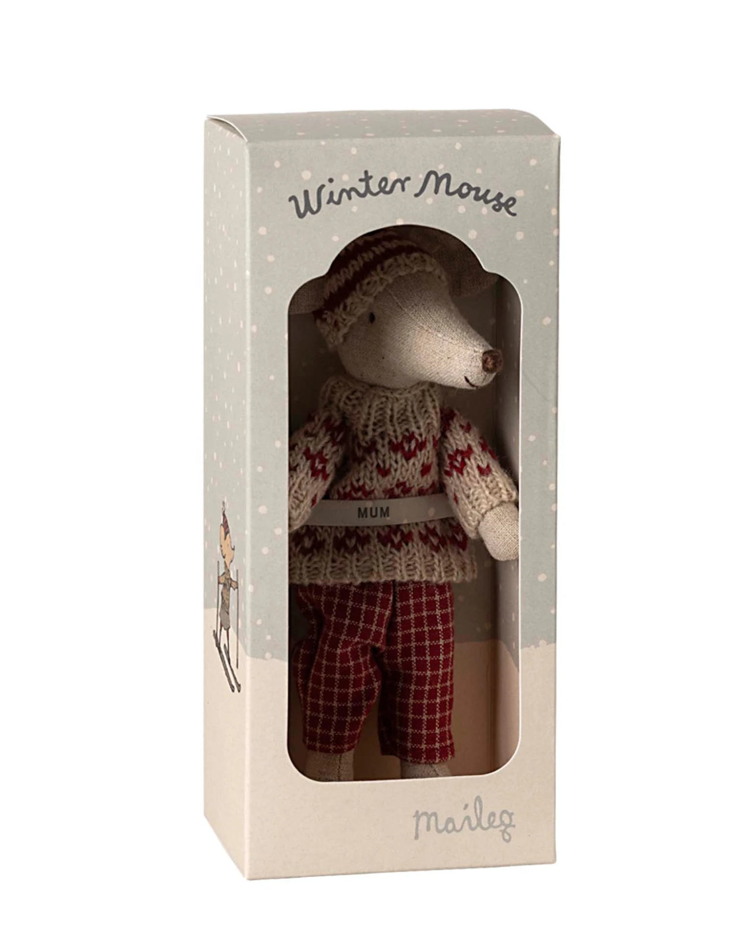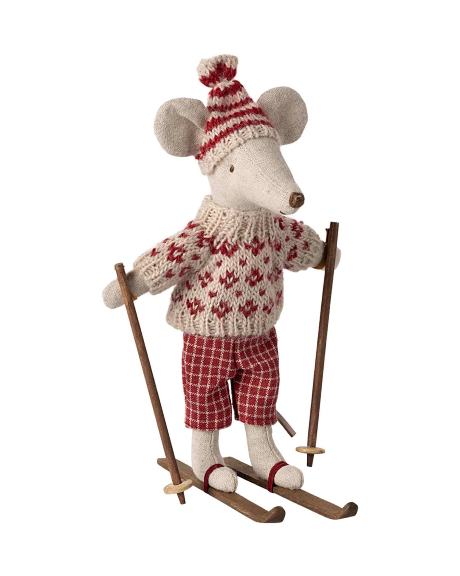 A mouse ready for hours of fun on the slopes during the cold wintertime. Each playset contains a warmly dressed mouse with a pair of ski and poles. Look at the tiny knitted hat that will keep the ears warm.