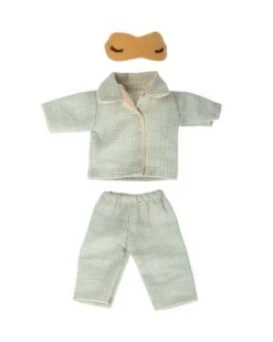Time for bed! The Pyjamas for Dad Mouse are not only darling but also soft and functional. These pajamas feature a soft blue check and a yellow sleep mask for the best night’s sleep.