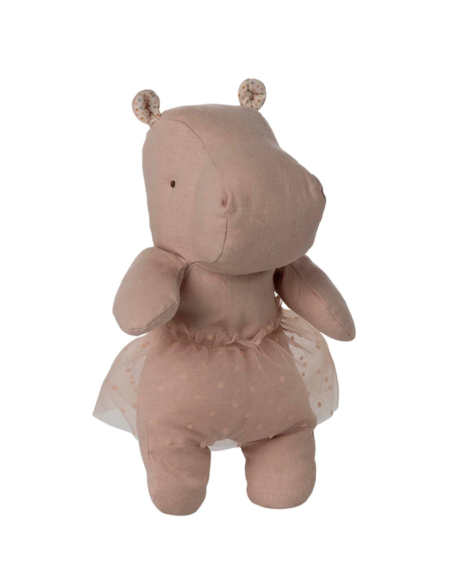Safari friends are made in the softest fabric and come in great colors. They can sit by themselves as they have beans in their bottom. They are just waiting for you to come and hug them. This small hippo is wearing a beautiful ballerina skirt.
