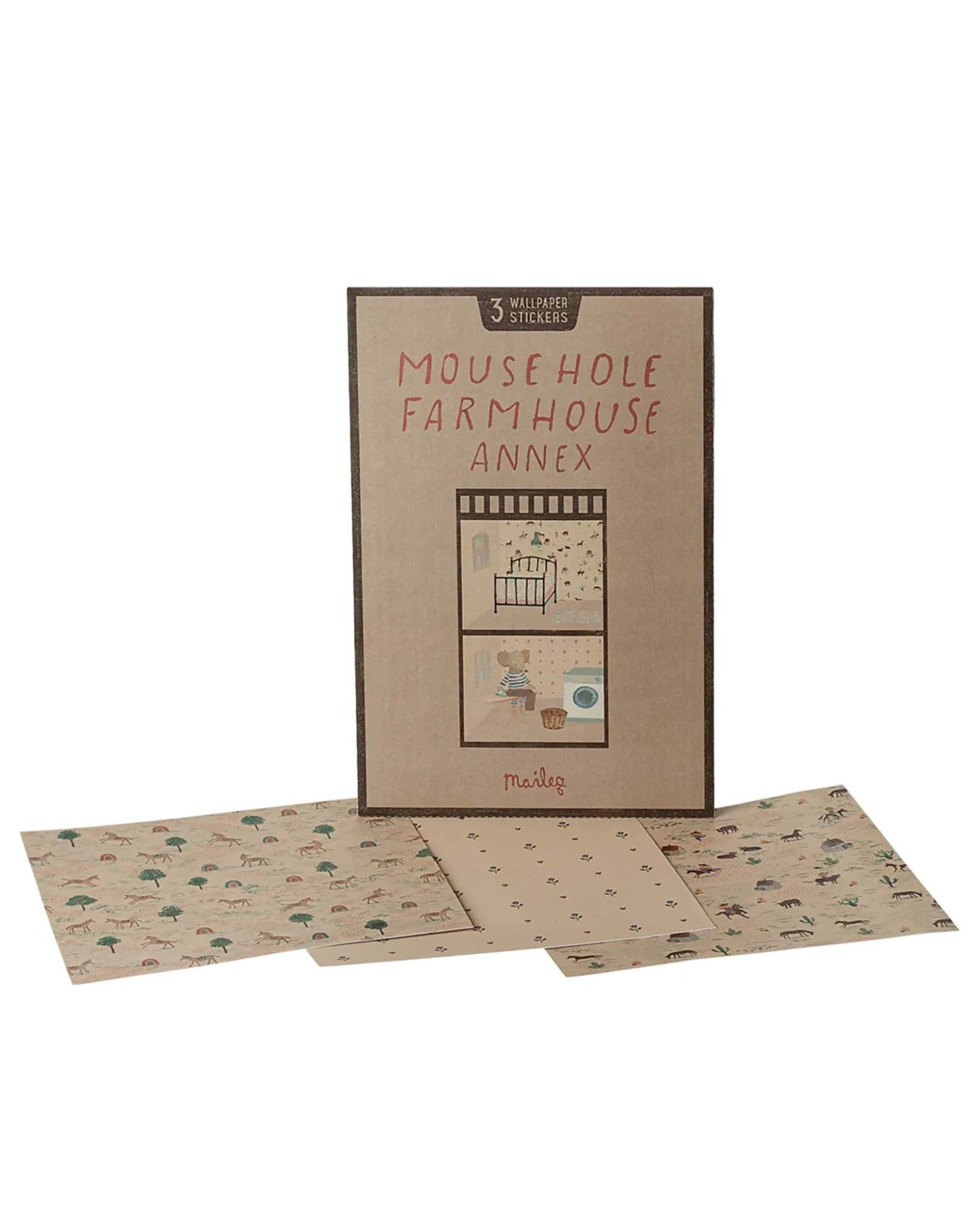 Change the look in your Annex for Mouse hole Farmhouse by adding this lovely wall paper. The set includes 3 stickers – one for each room with different print and colors so each room will get a lovely atmosphere and personal look.
