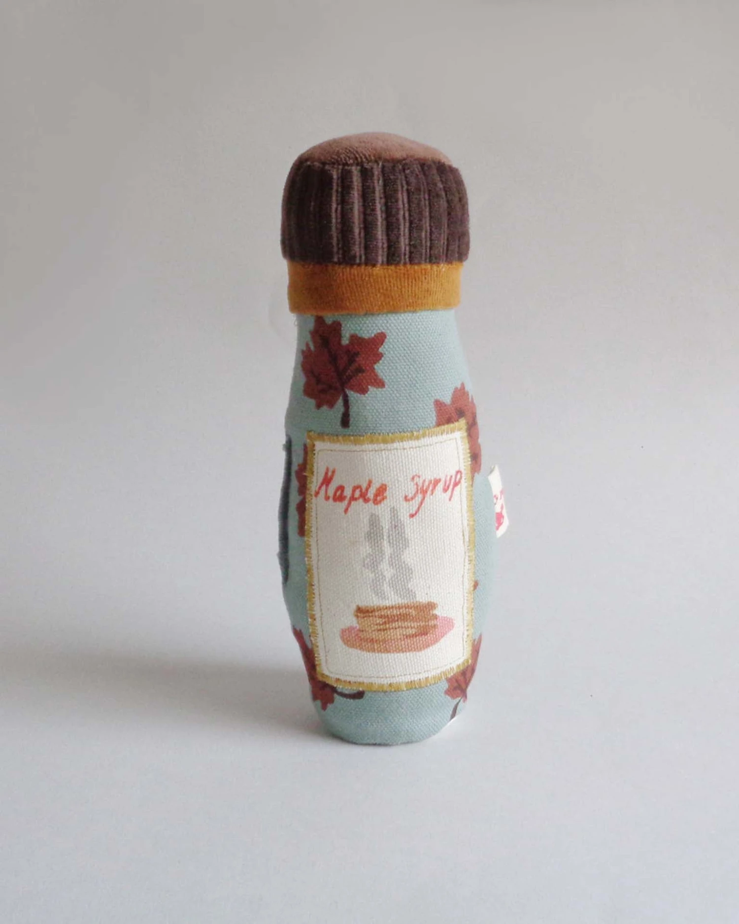 This realistic maple syrup bottle crafted of plant-based silk-screen printed pure cotton canvas and organic velvet will bring a unique look to any toy kitchen or deli shop. The rich color will captivate your child’s imagination. Perfect for pretend play, this maple syrup bottle is sure to bring hours of fun.