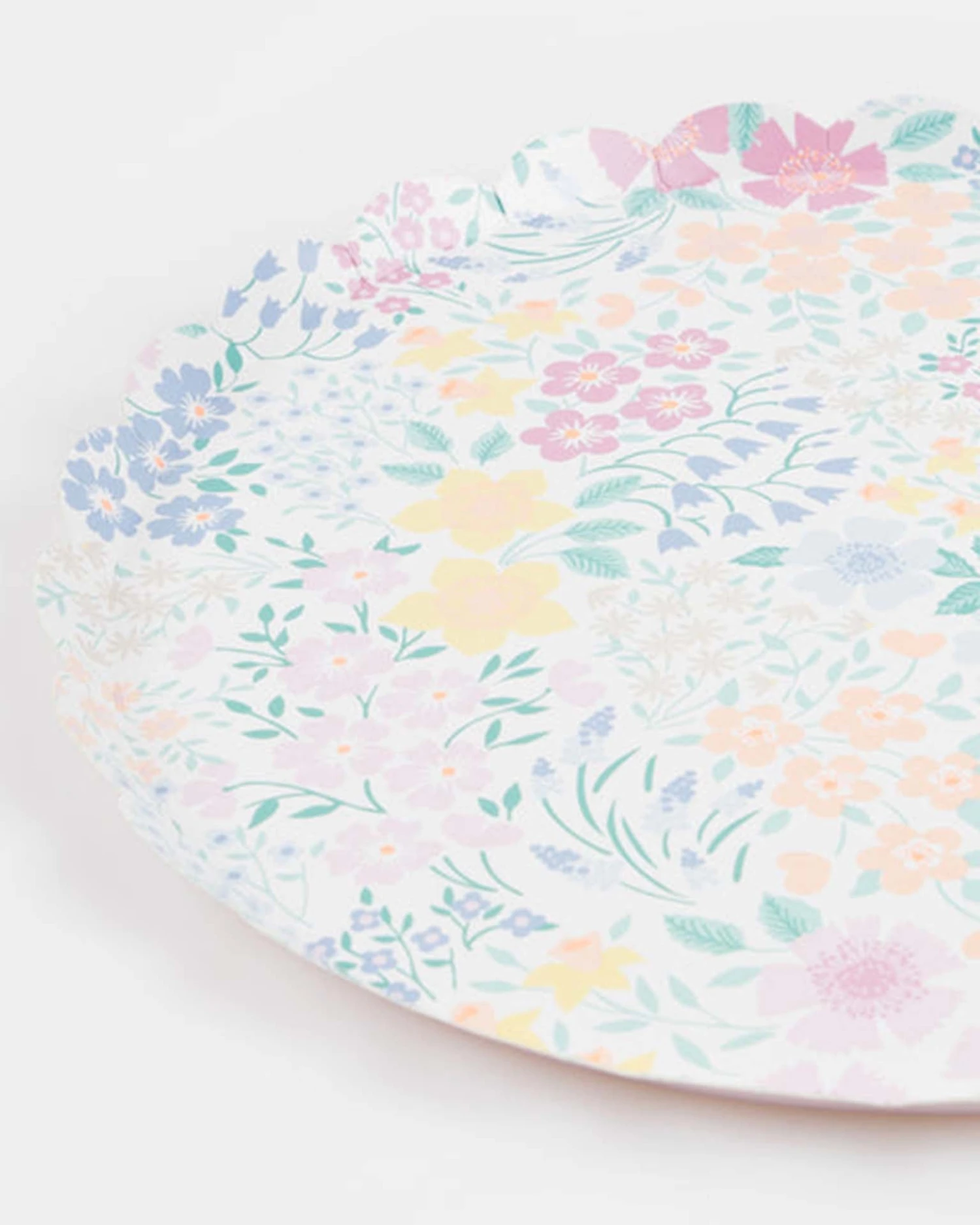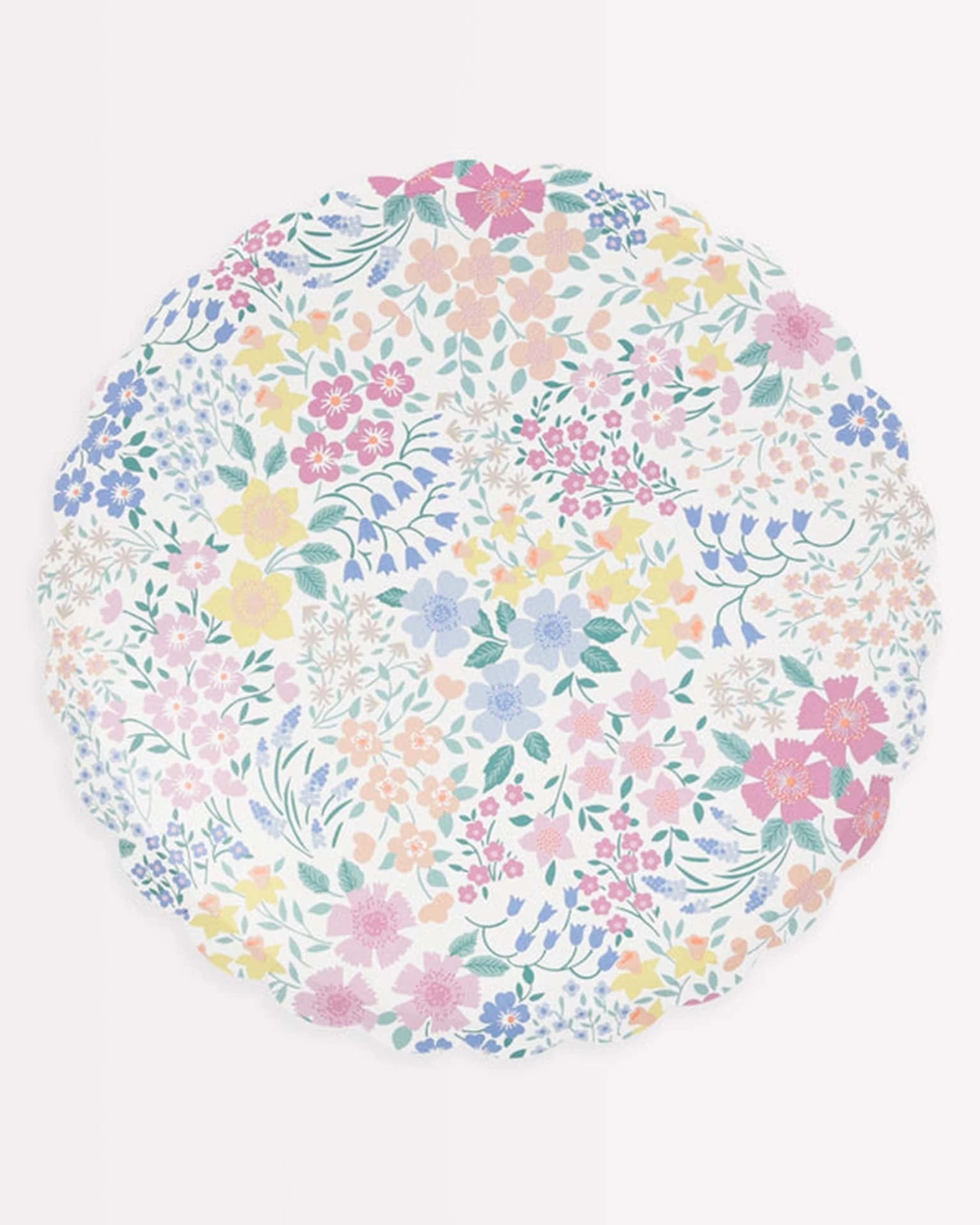 Welcome to our fantastic flower range! This pretty ditsy design is reminiscent of a cottage garden, with a field of floral wonder. Take your time to spot your favorites – daffodils, bluebells, daisies and many more – and instantly feel the joys of spring. These scalloped paper plates are the perfect tableware for a garden party, picnic, baby shower or bridal shower.
