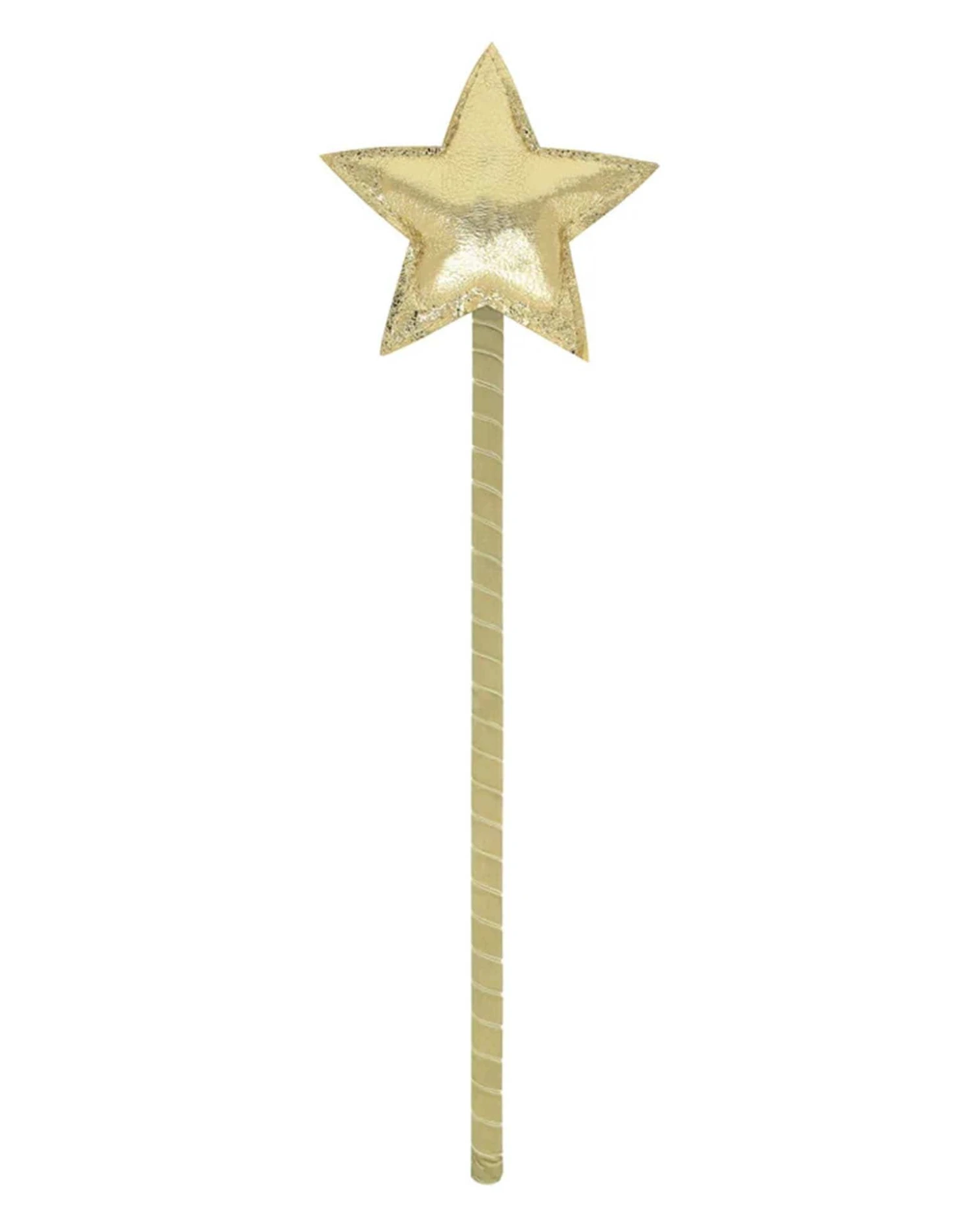 - Gold leatherette star wand with a wooden dowling stick wrapped in a pistachio green velvet ribbon
