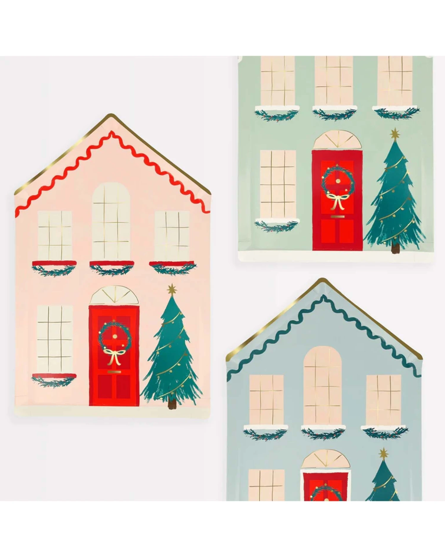 These paper plates feature traditional wintry houses where you just know the families inside are celebrating Christmas in style! Fun ric rac roof details team beautifully with shiny Christmas wreaths, and decorated trees and windowsills. Perfect to add a touch of instant nostalgia to your festive meals and parties.