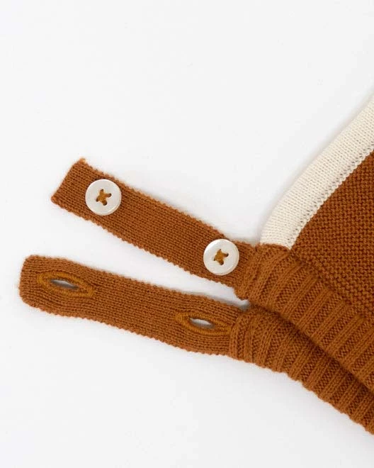 Transform a little one into an adorable fox with this very special set crafted from knitted organic cotton. Both the bonnet and bootees have adorable ear details. The bonnet closes with ivory summarys and the booties have elasticated tops to take them safely off and on. A wonderful gift for a baby shower or a newborn.