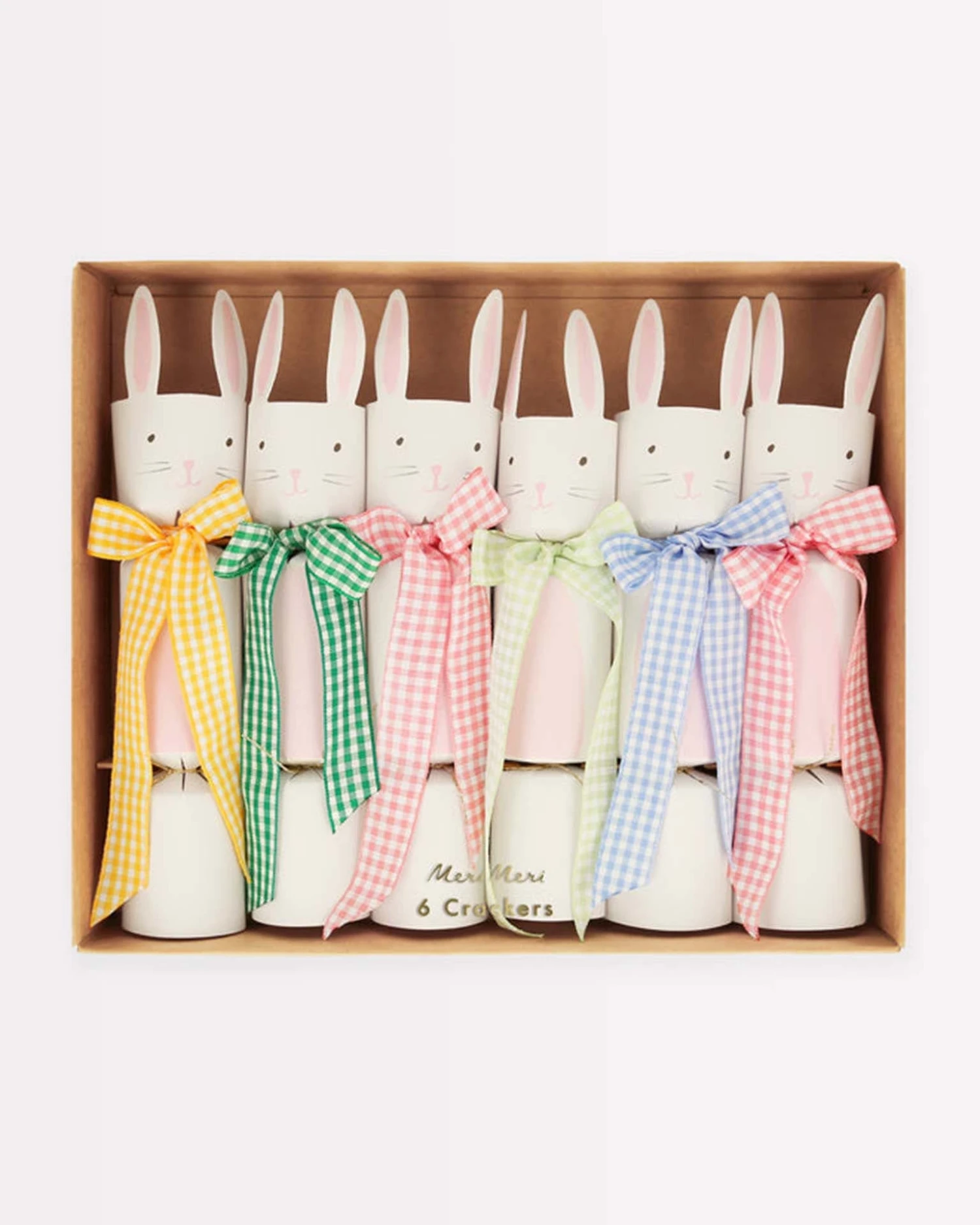 Gingham and bunnies are an on-trend springtime combination. These luxury crackers will add a fun, decorative look to your Easter table as well as giving your guests a paper hat to wear, a joke and a gift.