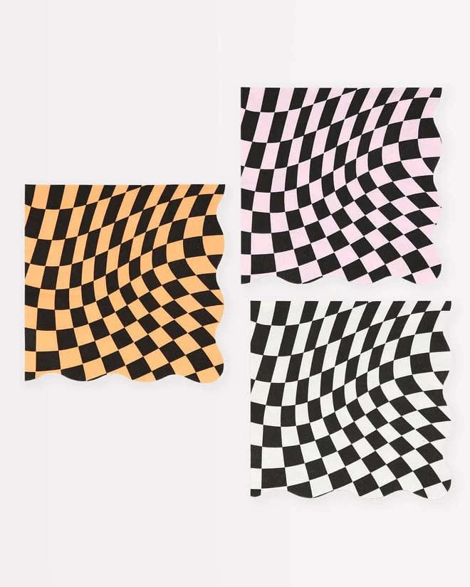 - Each pack contains 6 orange, 5 pink and 5 white napkins with a black checkered design