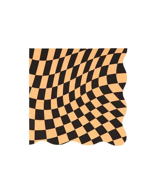 Check out these groovy Halloween napkins! The combination of orange, white and pink, with a swirling checkered pattern, gives a fabulous 60s psychedelic vibe. They’re perfect for parties for all ages, and will mix and match with other Halloween tableware.