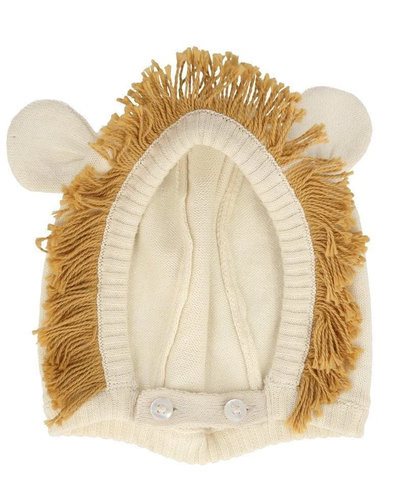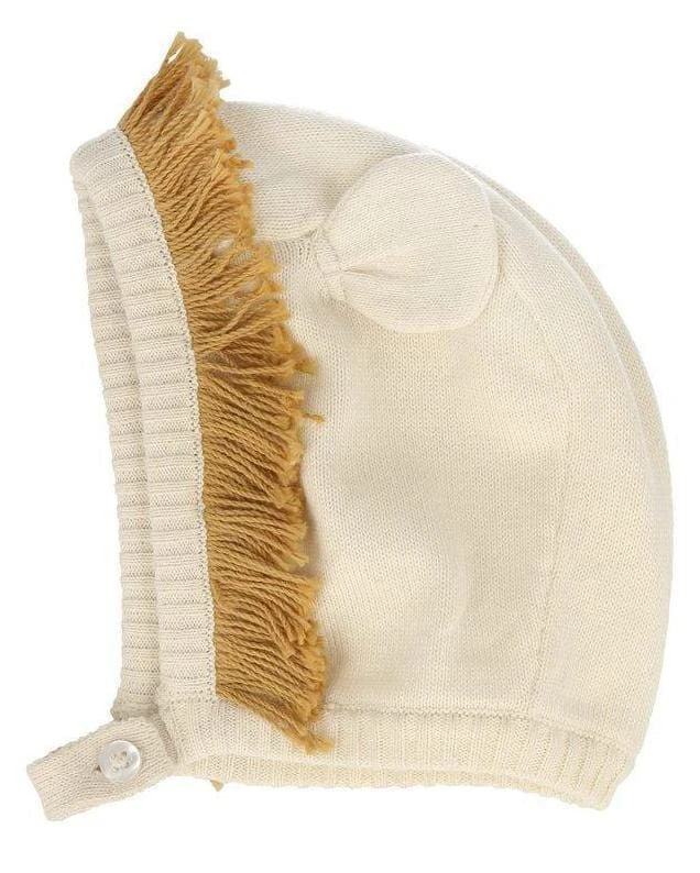 Roar! The king of the jungle has never looked so adorable! Transform a little one into a super cute beast with our Lion Baby Bonnet by Meri Meri. Beautifully crafted from soft organic knitted cotton with cotton thread fringe and ear detail, this hat is finished with a gorgeous ivory summary fastening.
