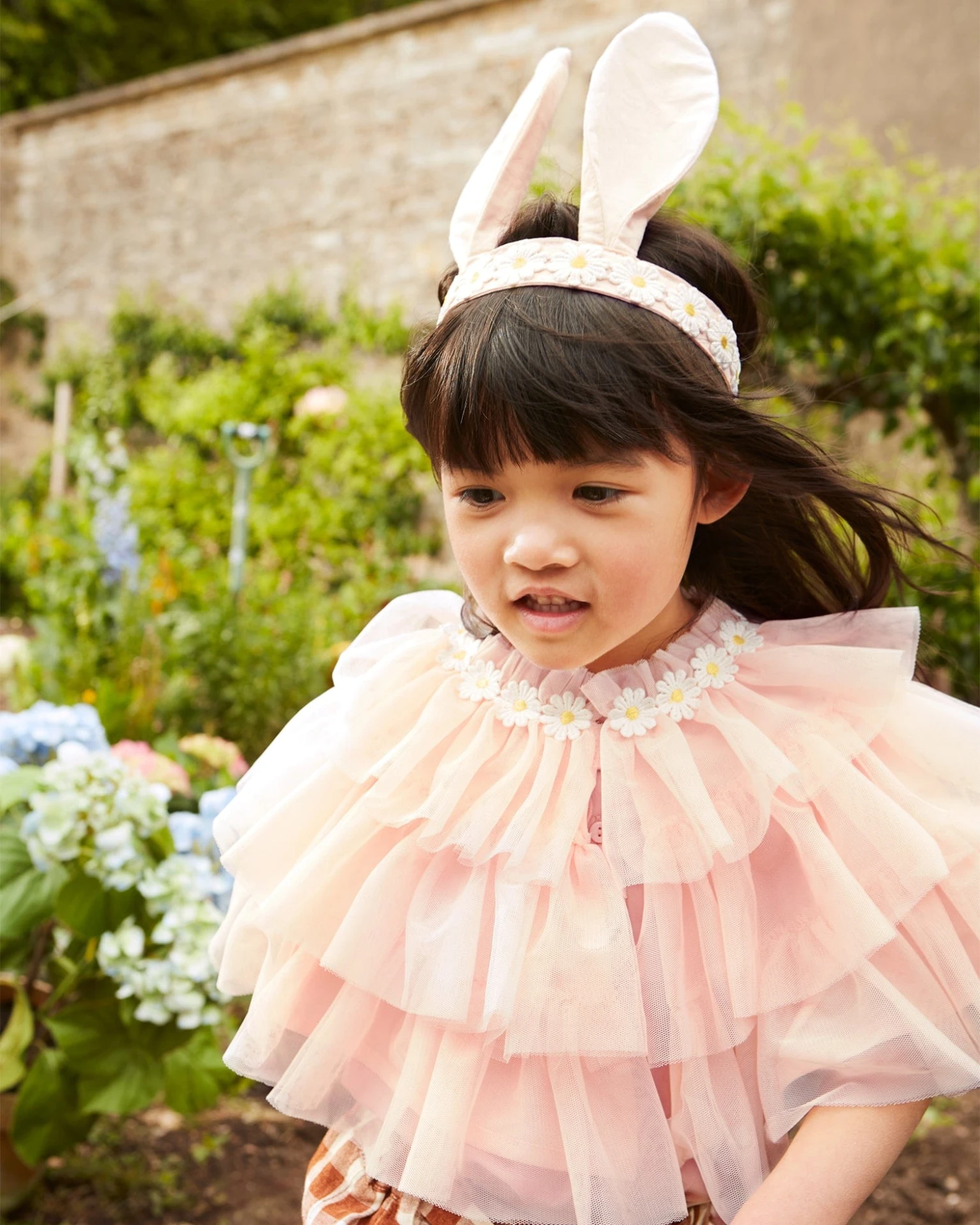 This beautiful bunny costume from Meri Meri is crafted from premium fabrics and embroidered details – perfect for Easter or Spring dressing up. It includes three separate pieces – a headband with 3D ears, a romantic layered tulle cape and a velvet waistband with a soft pompom tail.