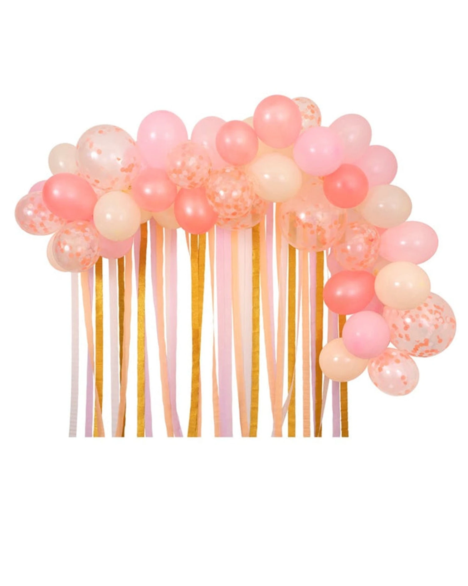 If you’re looking for on-trend decorations, you can’t go wrong with a beautiful balloon and streamer garland. This version from Meri Meri has been created with balloons in shades of pink and crepe paper streamers in gold, ivory and pink. It’s perfect for your next celebration.