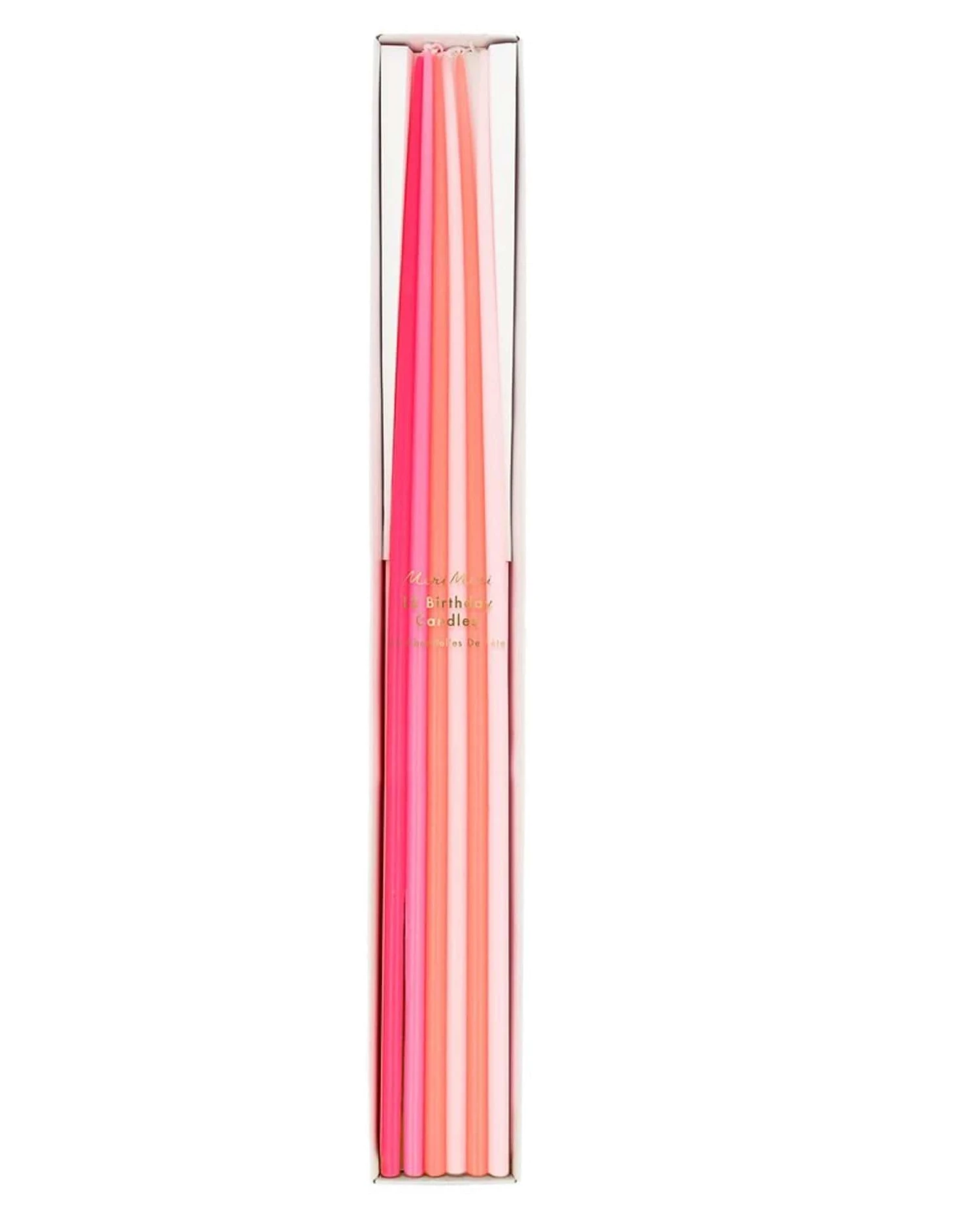 Instantly add a touch of color to celebratory cakes with these stylish pink tapered candles. They are super tall to give a statement effect.