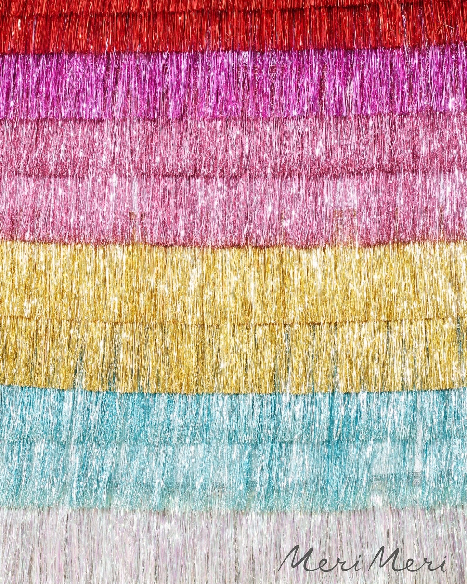 Add a touch of shimmering pink to your next party with this gorgeous Pink Tinsel Fringe Garland from Meri Meri. Perfect for any celebration or just to add style and shine to your home.