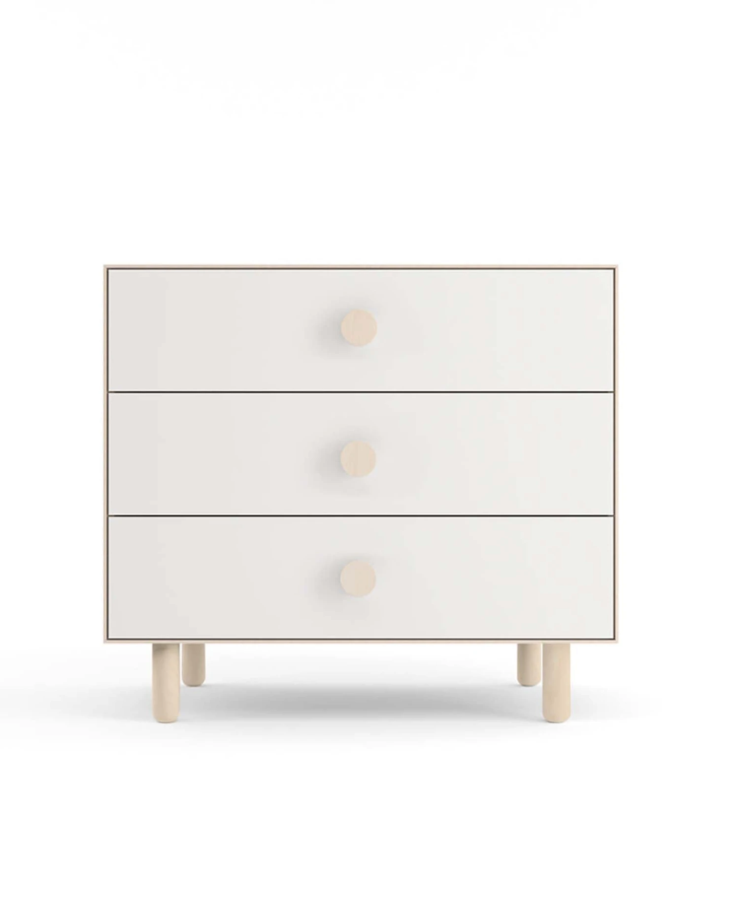 Featuring statement-making oversized pulls, the Oeuf Moss 3 Drawer Dresser is built to last and will grow with your child for many years to come. With minimal finishing required, the body of the dresser arrives fully assembled, ensuring its quality construction. Three deep drawers provide generous storage.