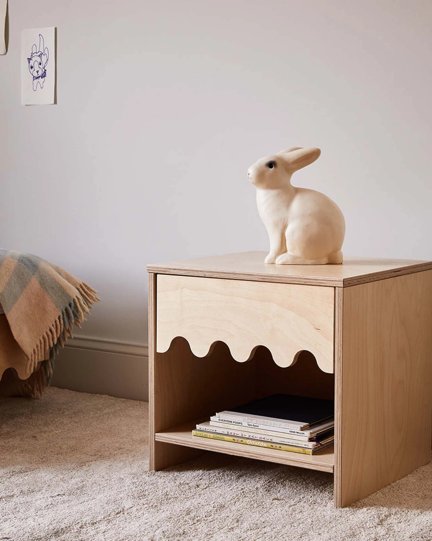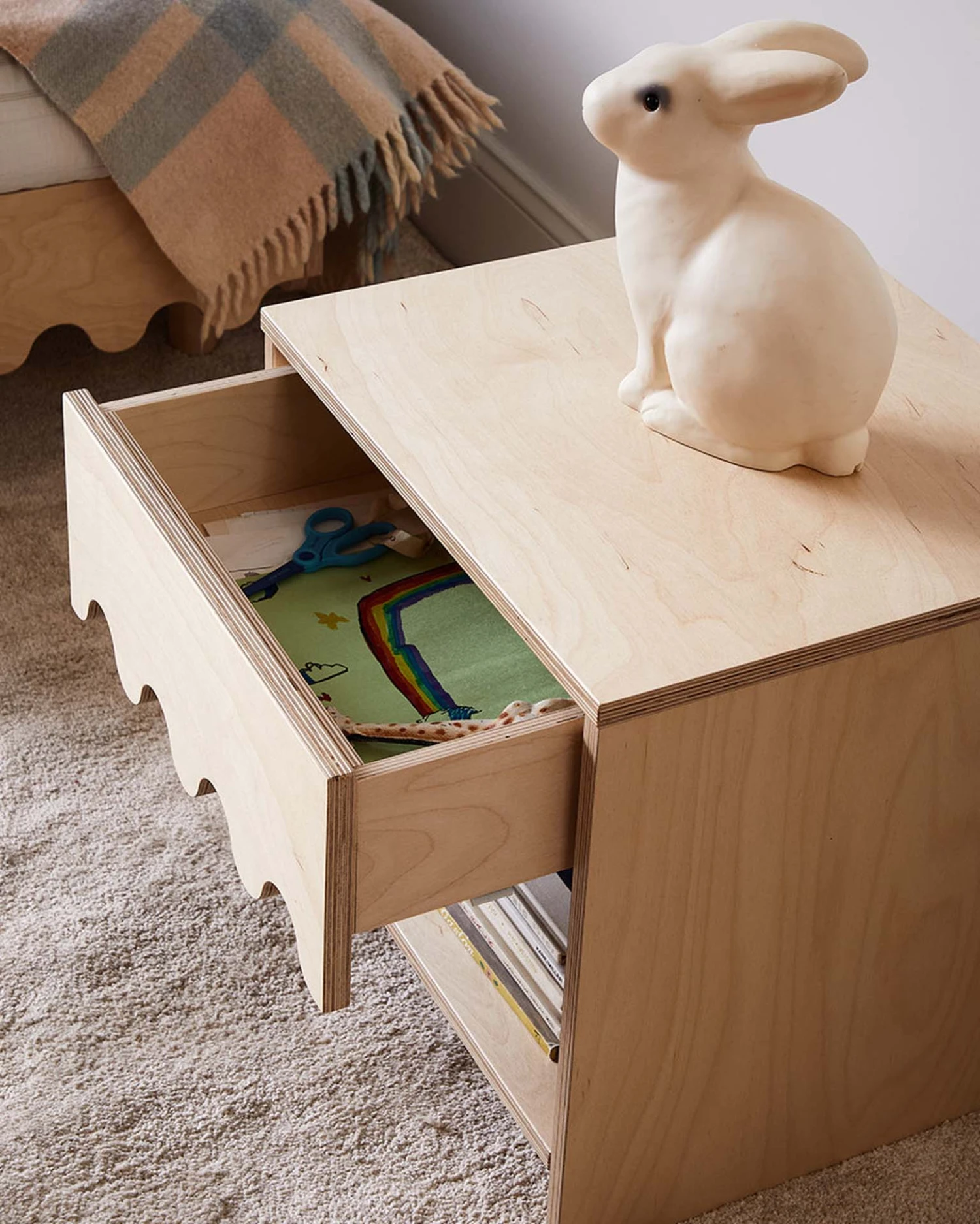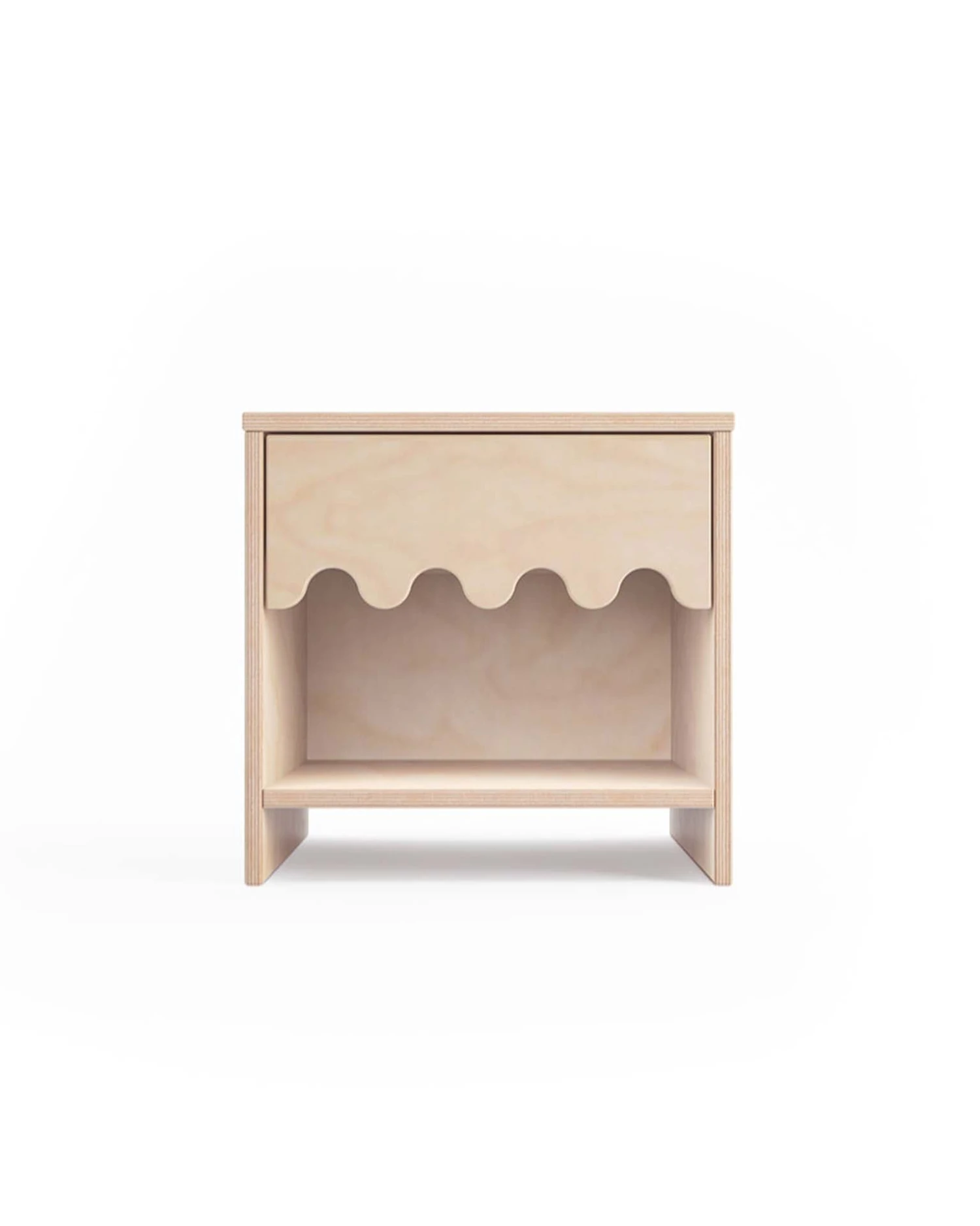 Part of our best-selling Moss collection, this nightstand elevates the everyday with its signature wave design. Ethically made in Europe, it offers both open shelving for bedtime books and a soft-close drawer for treasures.
