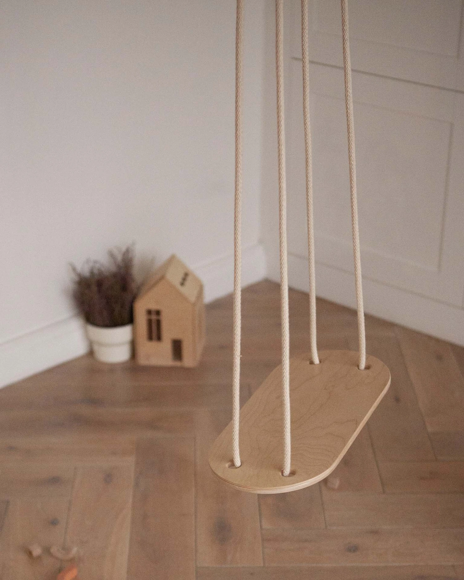 - Includes wooden swing with cotton ropes, 2 carabiners and cotton carrying bag