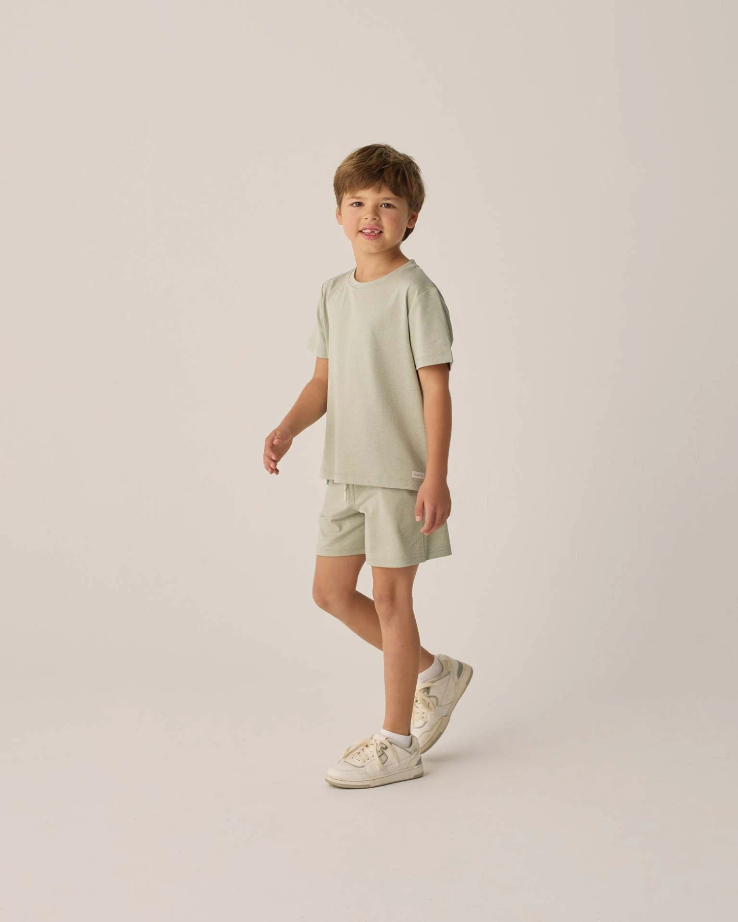 An everyday short featuring a classic elastic waistband, durable drawstrings, and zipper side pocket.