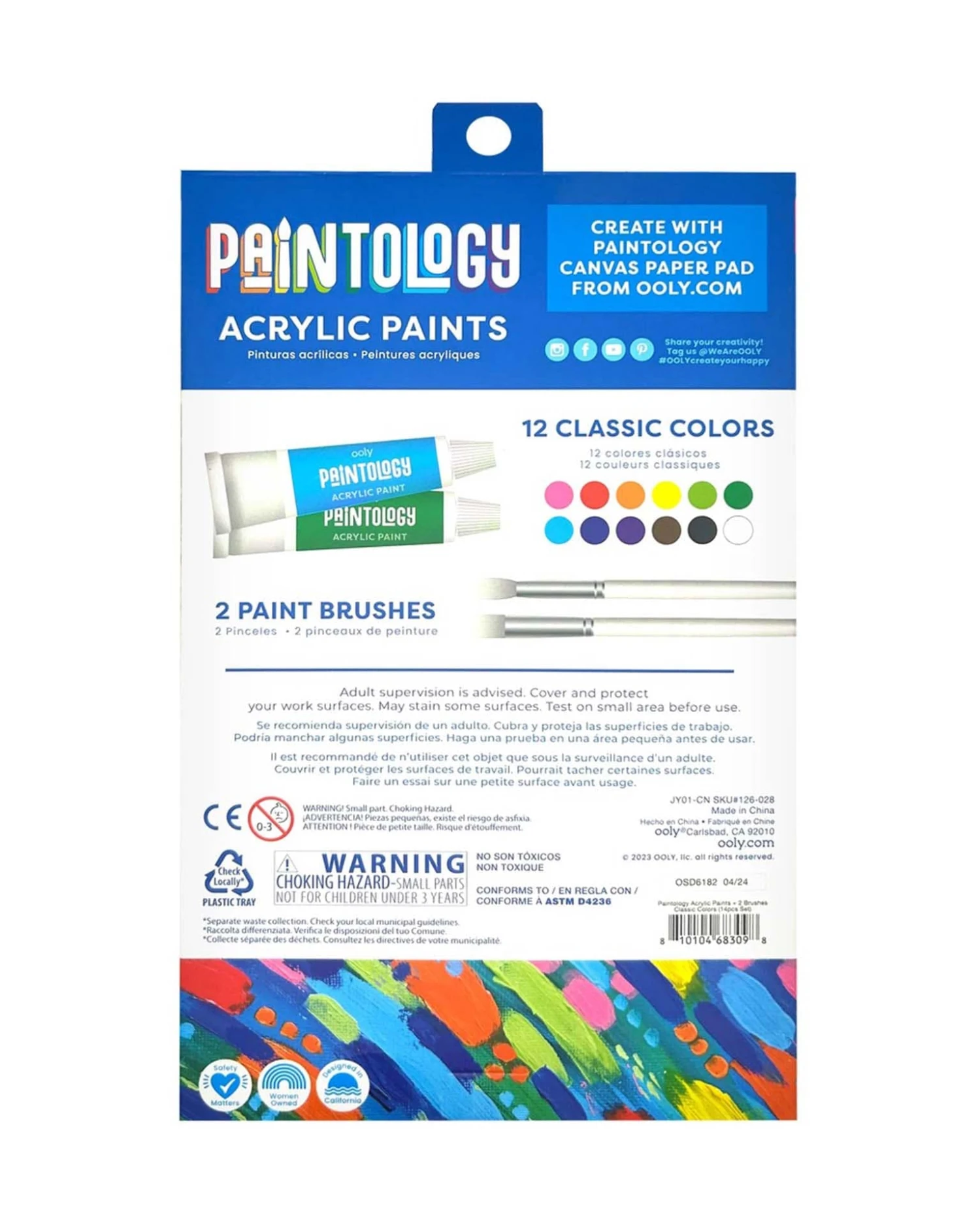 - Kit includes 12 acrylic colored paint tubes, 2 paint brushes (one thin and one broad)