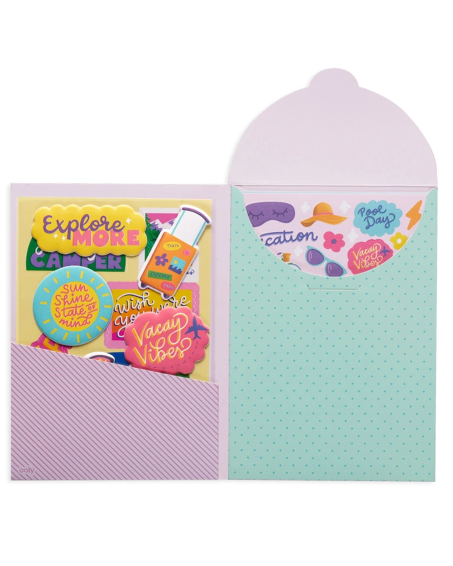 The Quirky Fun Sticker Stash set from Ooly is the perfect collection for decorating planners, journals and more. Each set has 6 paper sticker sheets, 1 vinyl sticker sheet, 1 puffy sticker sheet plus a handy reusable folder for safekeeping. With over 200 delightful stickers featuring adorable suitcases, sunglasses, beach stickers and other vacation stickers, you can let the sticker fun begin!