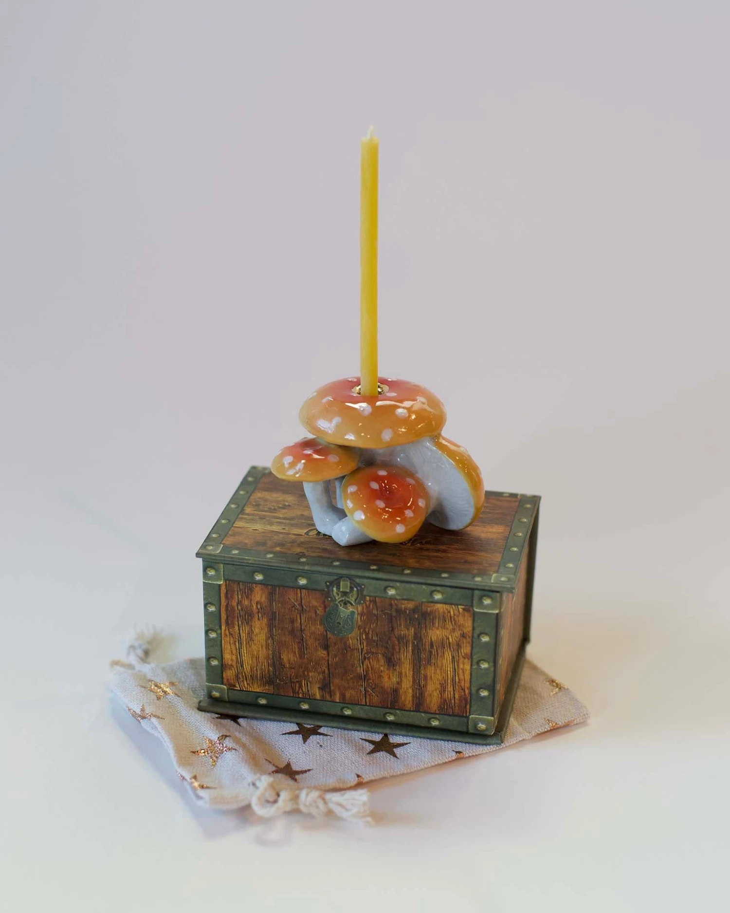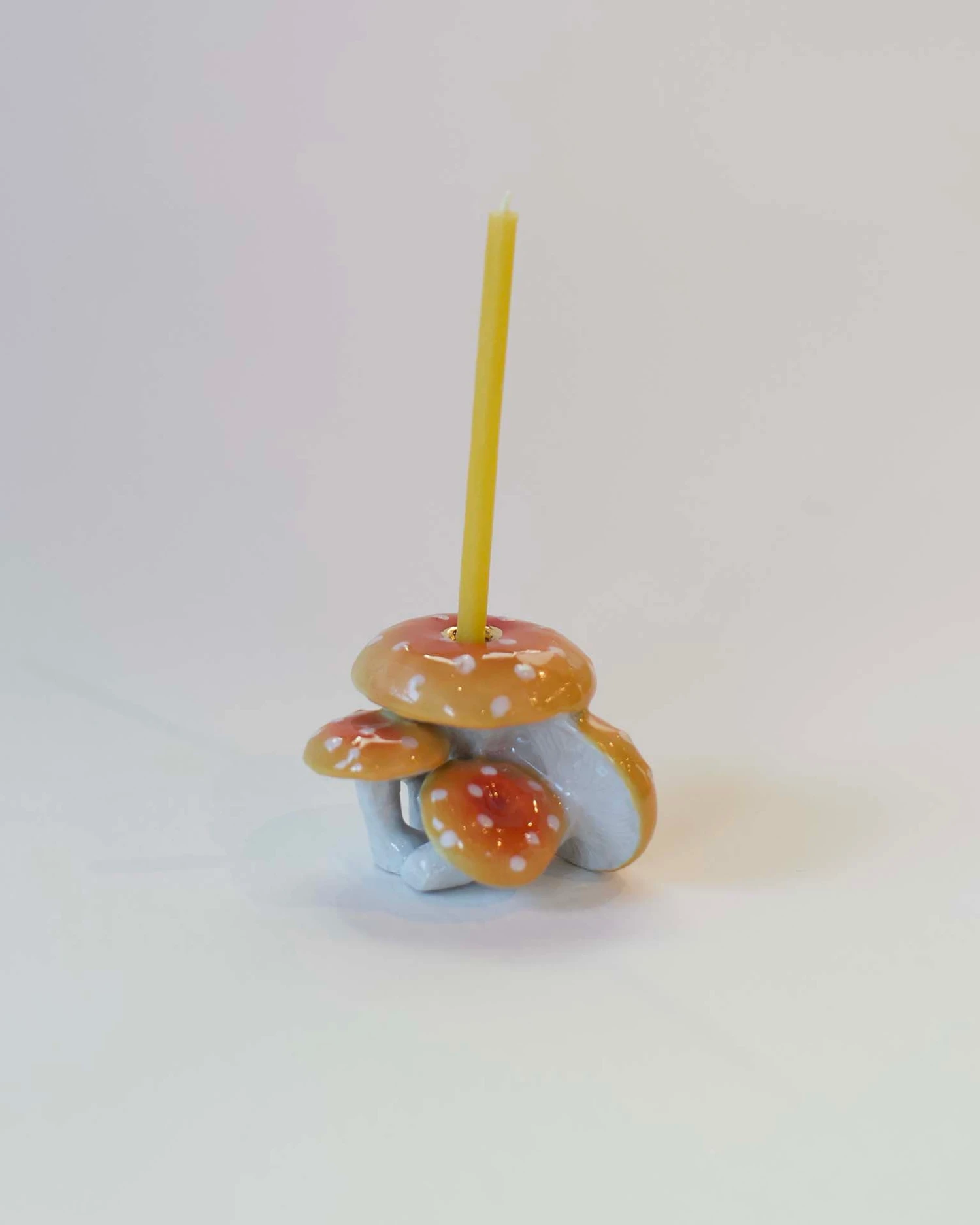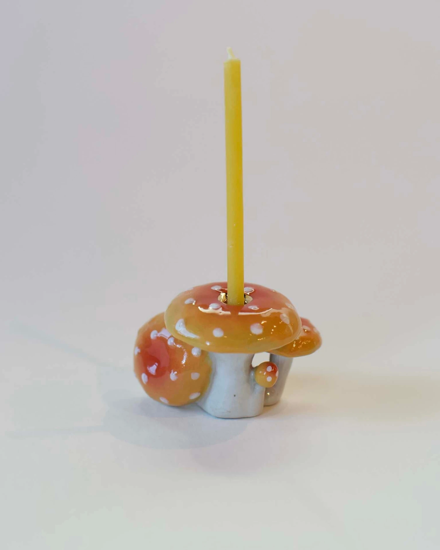 Celebrate with a little whimsy with this ceramic Orange Mushroom Cluster Cake Topper from Camp Hollow. This hand-painted candle holder is the perfect accessory for that sweet special occasion. With heirloom-quality craftsmanship, this mushroom is sure to be a treasured family keepsake. Party on!