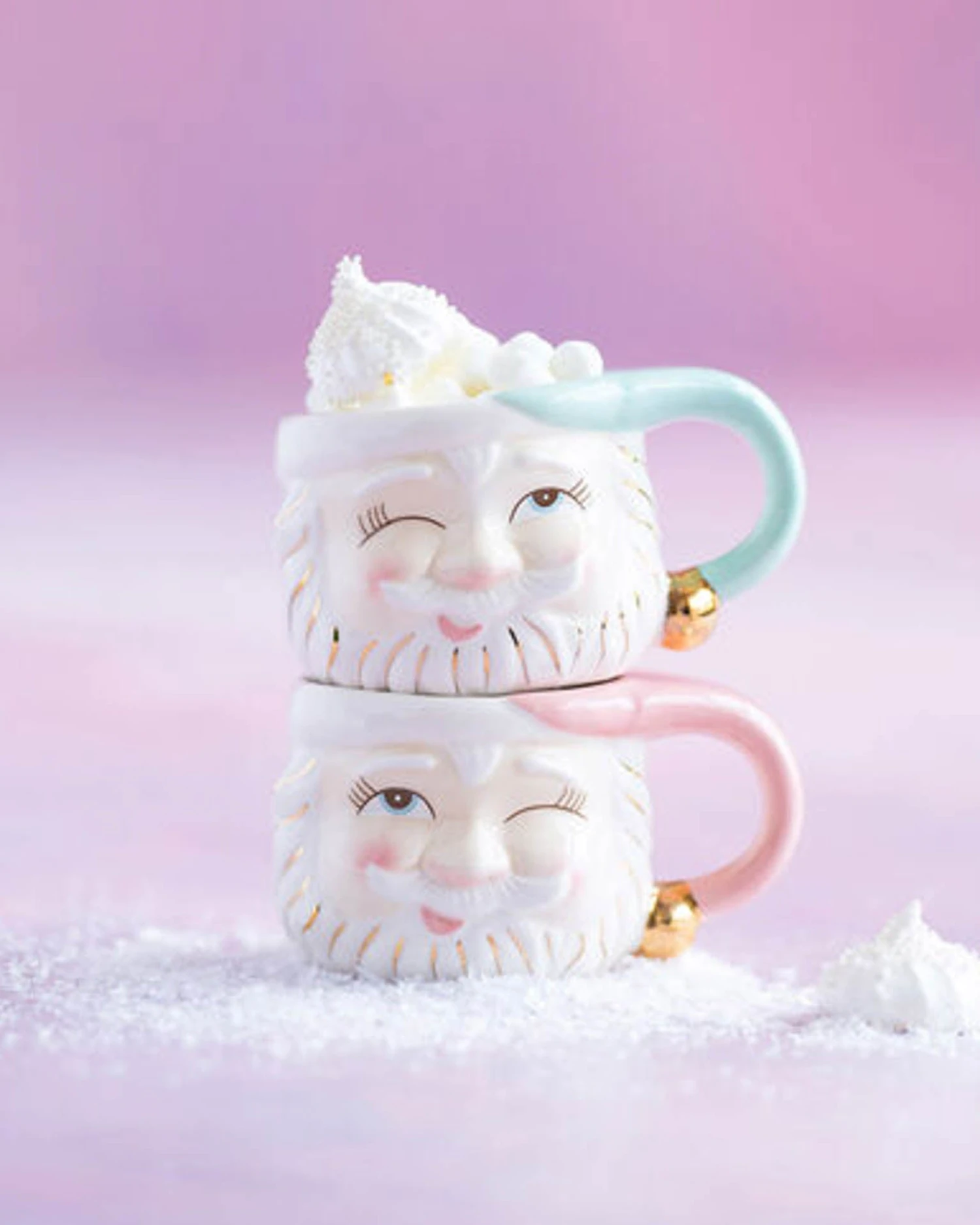 Perfect for your holiday hot cocoa, the Papa Noel Mug from Glitterville features a winking Santa face and a bit of festive gold detail. Please note that this purchase includes one mug.