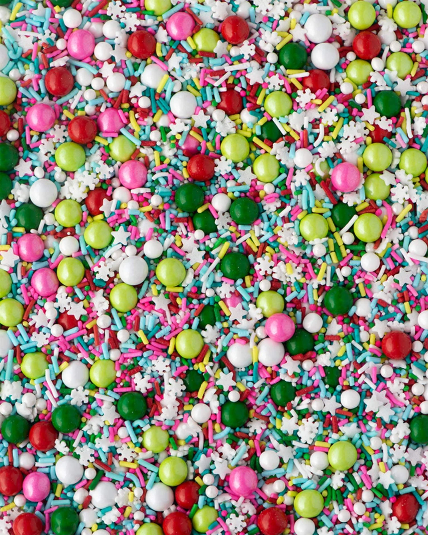 The Pass the Parcel Sprinkle Medley is a one-of-a-kind mix of festive cuteness! This mix features Canadian-made premium crunchy red, green, lime green, turquoise, pink and white sprinkles, coordinating candy beads, large colorful sixlets, snowflake confetti quins, mini tree confetti, Christmas sequins, nonpareils and more. All of the sprinkles in this mix are candy-sweet and yummy on their own.
