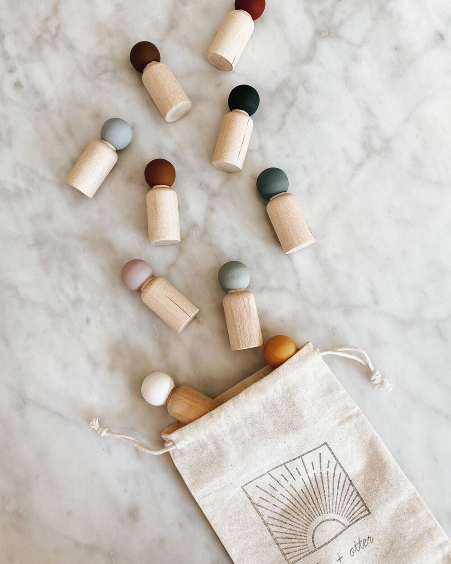 - This set contains 10 peg dolls in a natural cotton carry bag