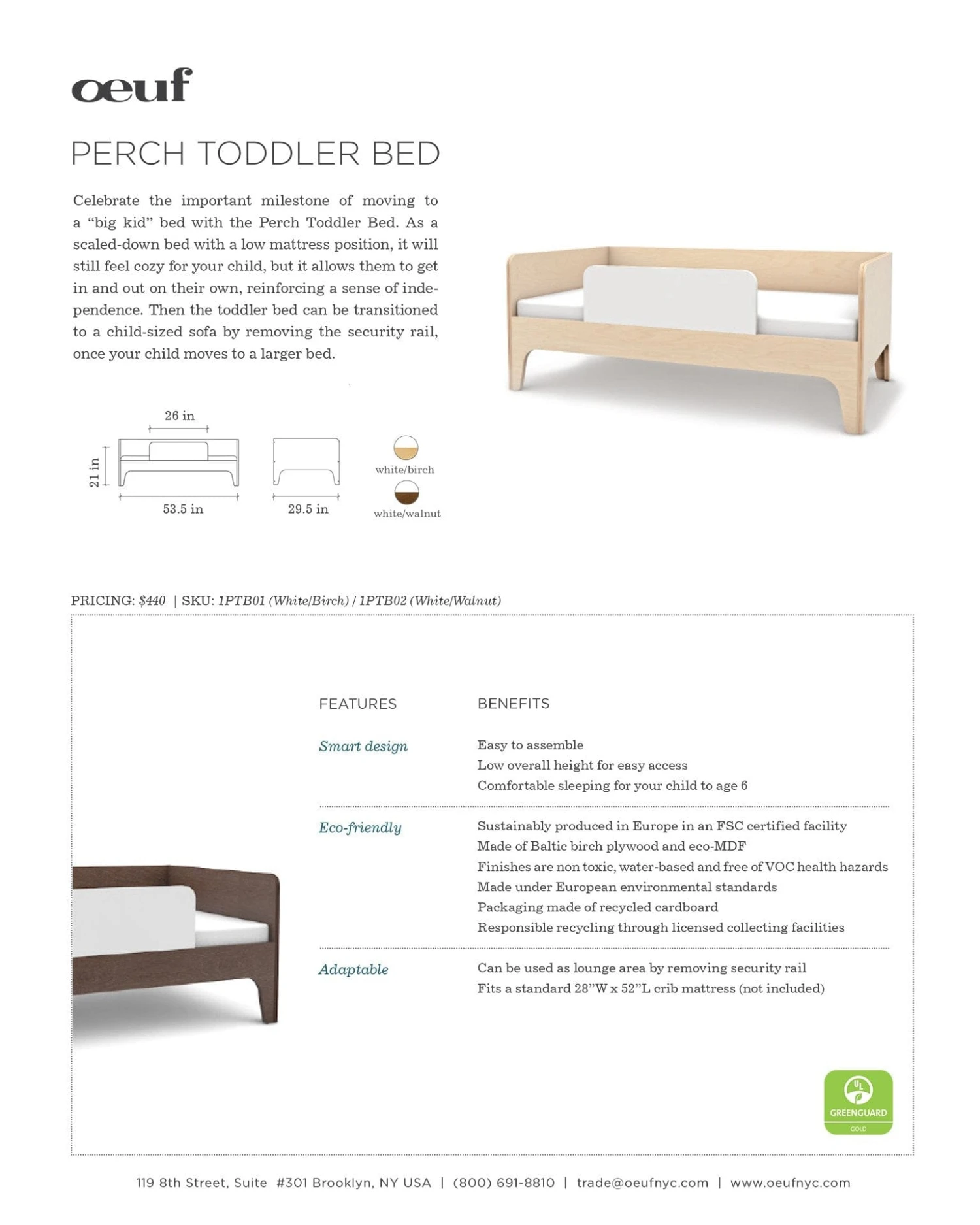 A big-kid bed for now, and extra seating for years to come—what’s not to love? Designed with versatility in mind, the Perch Toddler Bed features a low mattress position for easy toddler access, affirming their sense of growing independence while extending the life of their standard crib mattress. When it’s time for a new look, simply remove the security rail to transform the toddler bed into a cozy daybed.