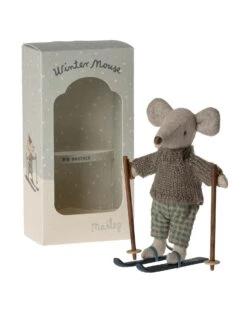 Maileg Big Brother Winter Mouse With Ski Set In Grey