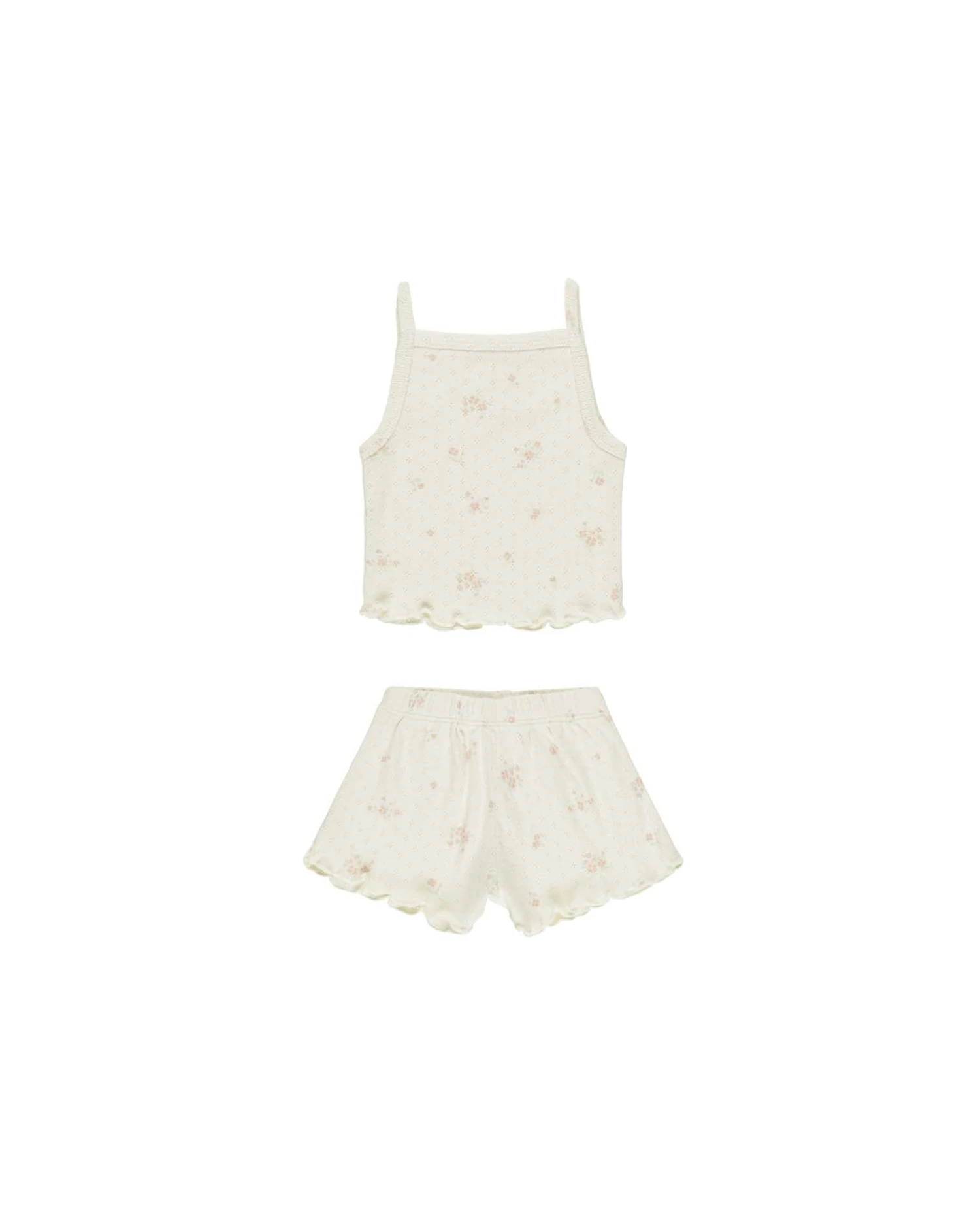 This pointelle set is a sure summer staple! Featuring a square neck tank top and shorts with an elastic waistband and bow detail.