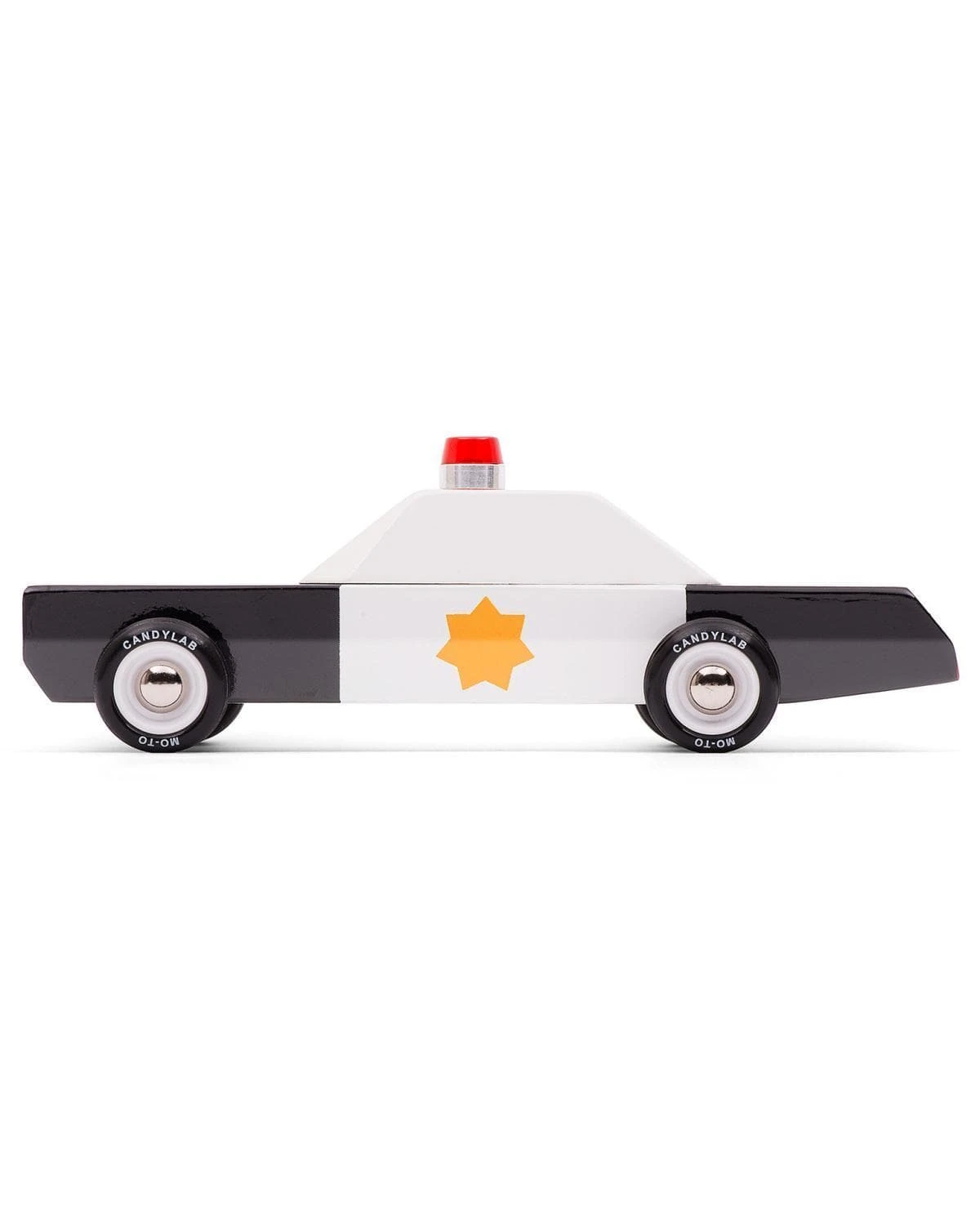 Boxy + assertive, the Police Cruiser is a must have for any Candylab collection. With a shiny Black-and-White paint scheme, gold star and with two cherries on top, this Cruiser makes sure that racing stays at the track.