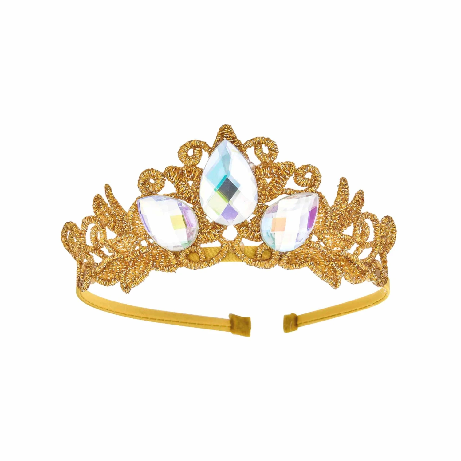 - Color: Gold lace base and three clear gems.