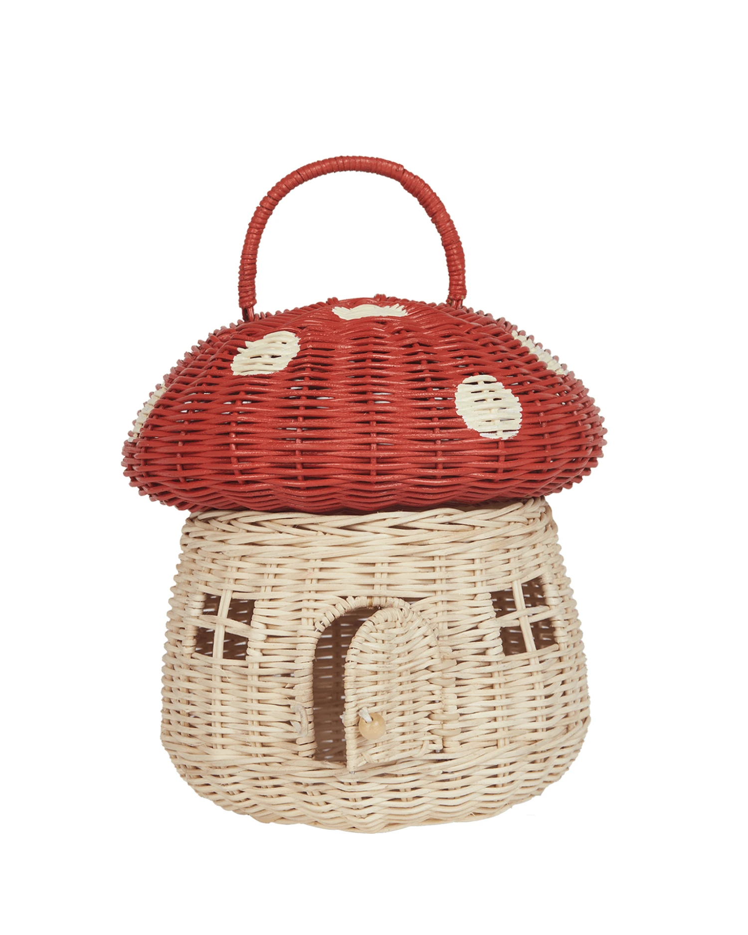 Made from 100% Natural Rattan and colored using water-based paints, the Mushroom Basket has a flat base and can be displayed upright. Use it as a carry bag or a decorative basket.