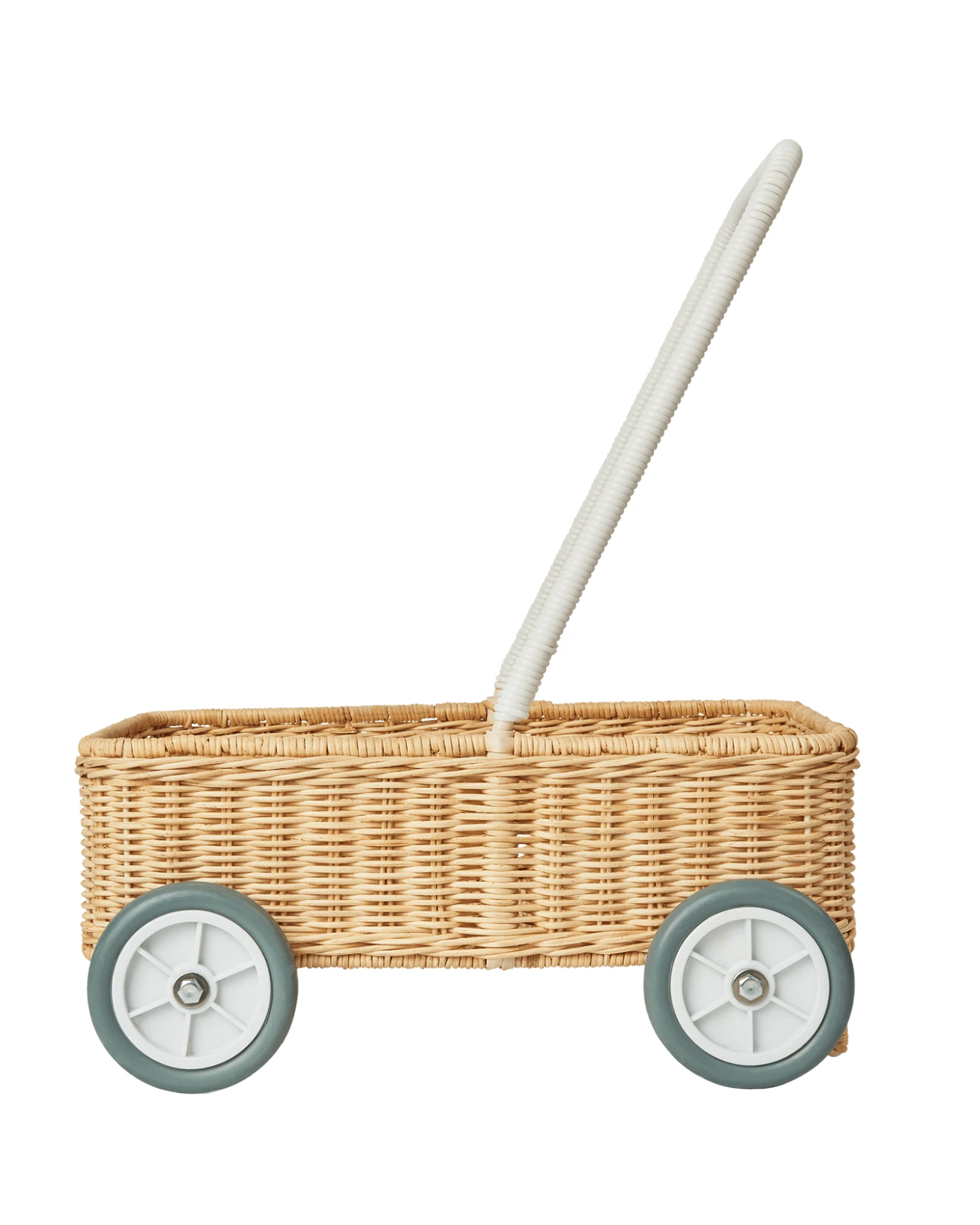 Little ones will love taking their Cozy Dinkums, Dinkum Dolls and worldly treasures along on adventures big and small! Featuring two anti-tip stoppers, this 100% Natural Rattan Walker has a sturdy metal base for pulling up and a unique design that makes pushing a breeze no matter how many passengers might be loaded up.