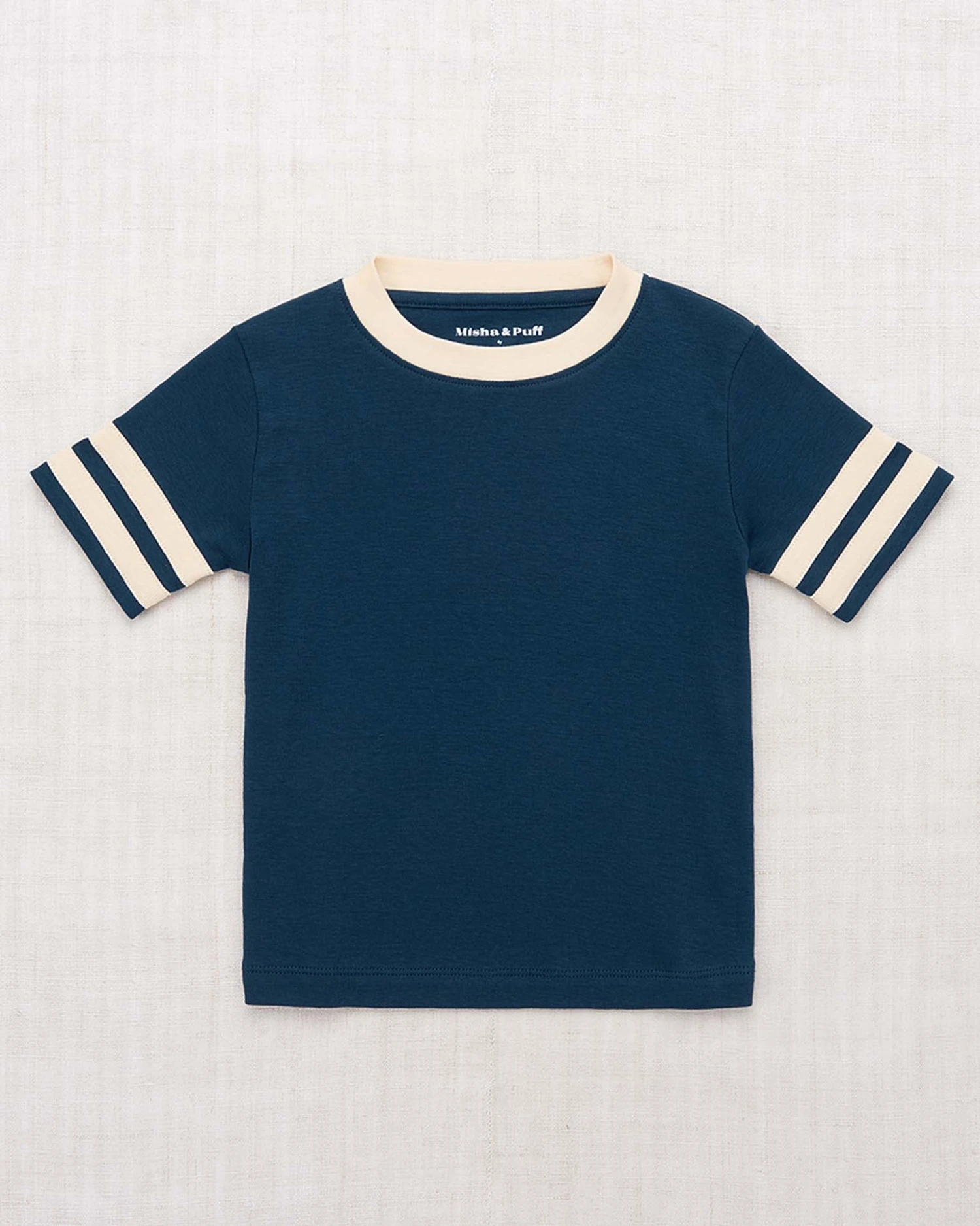 A classic slim-fit ringer tee in soft Pima cotton, with contrast appliqué striped sleeves and a contrast neckline.