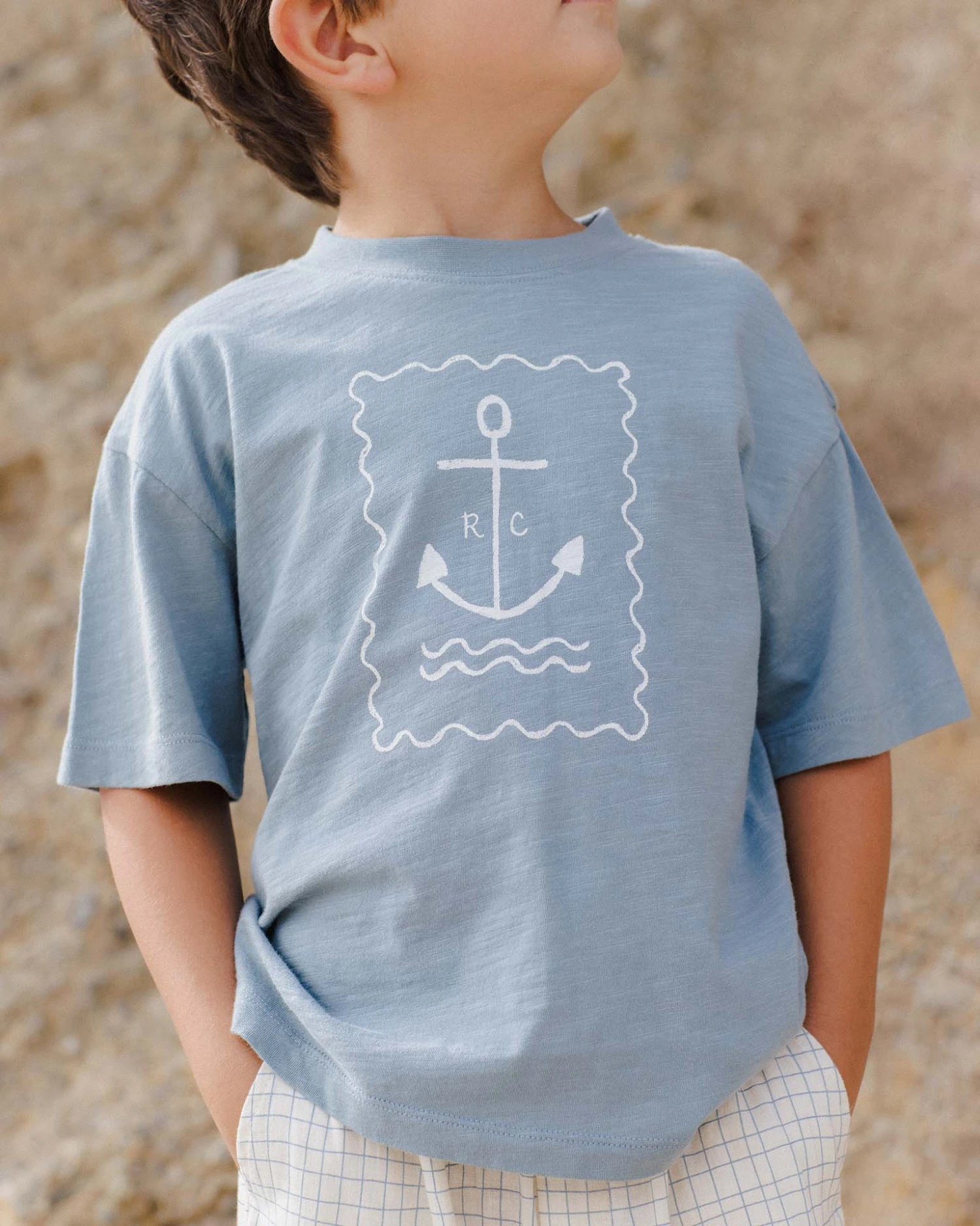 Relaxed fit tee made from our soft cotton jersey. Shoulder snaps are included on sizes 0-3M – 18-24M for easy changing. Anchors aweigh! Set sail to summer adventures in this cool look.