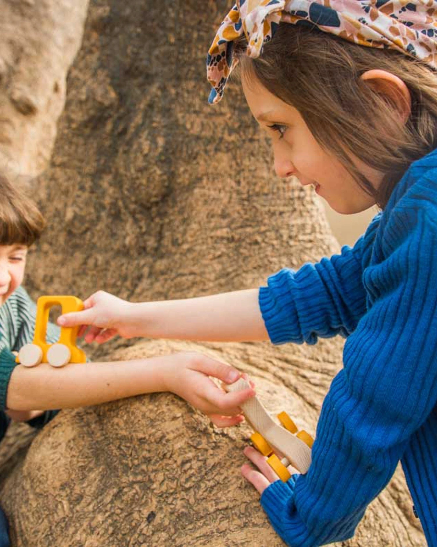 Encourage fine motor skill development through free play with Road Stories from Me & Mine. Your little ones imagination will roam with this sweet car and truck set, all while improving hand-eye coordination and dexterity as they carry, pick up, push and pull any which way. Featuring packaging intended to be used as a playground, we remember that adventure can be found almost anywhere.