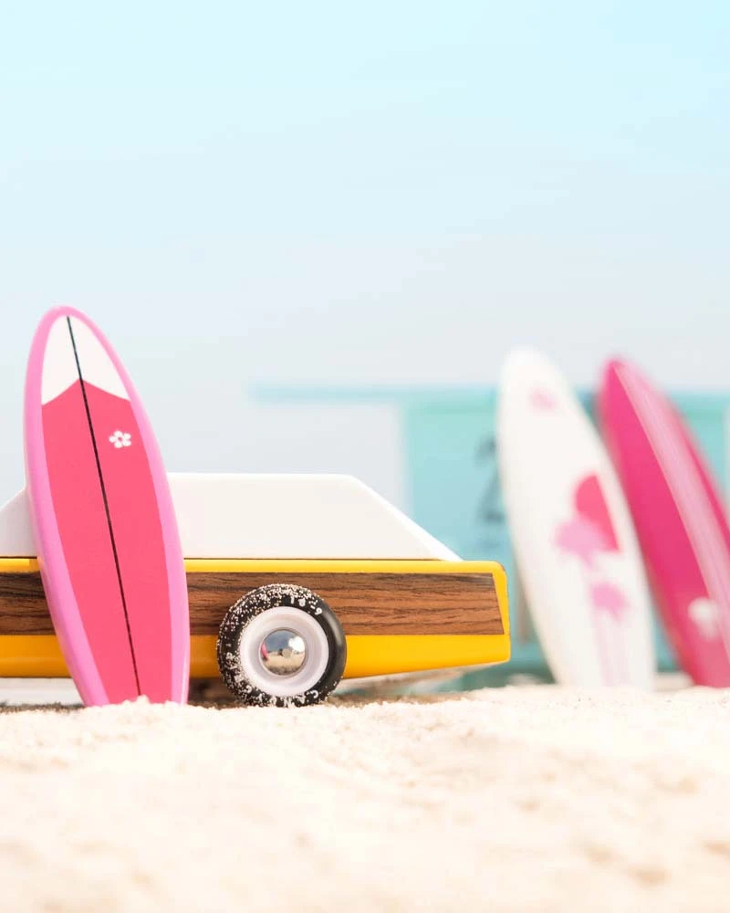 You get three unique styles in this pack of solid beech surfboards. With an embedded magnet in each, put one on your Candylab Woodie, one in the back of your Candylab Longhorn, and one on the fridge.