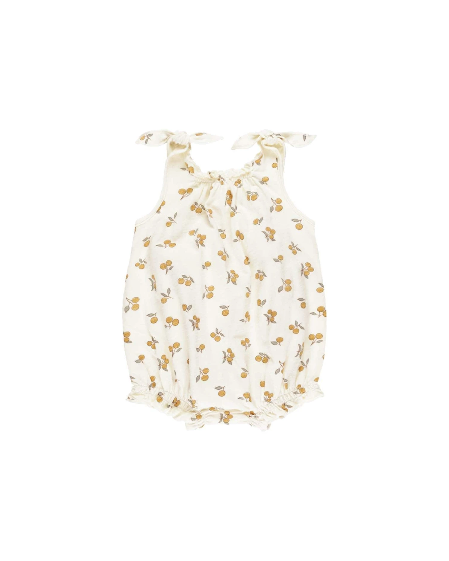 This soft bubble onesie features fixed tie shoulder straps and bottom snaps for easy changes. Live ‘la dolce vita’ in this sweet citrus look for summer!
