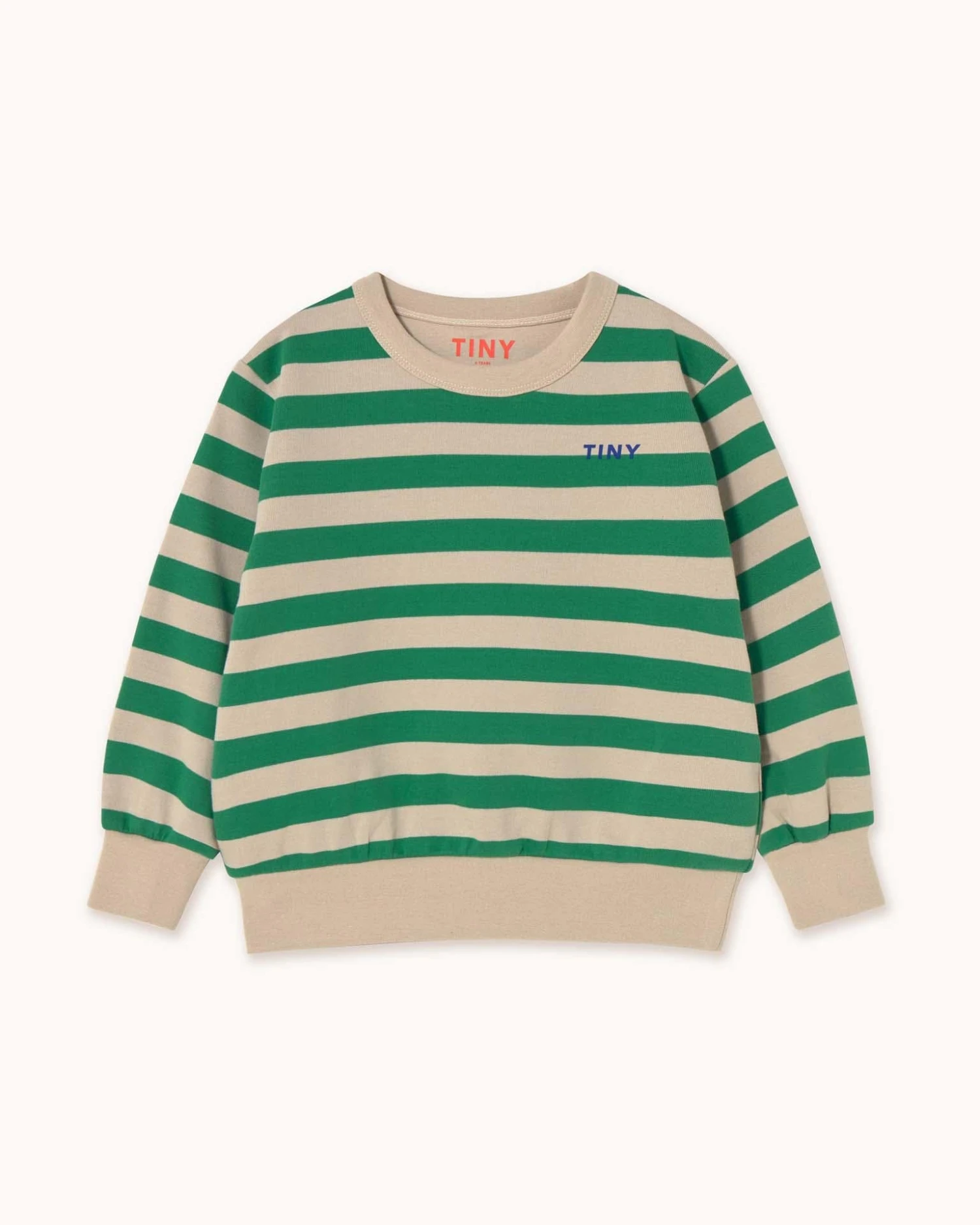 Stripes that never go out of style—this sweatshirt in emerald and vanilla colorway is all about classic comfort with a twist. Crafted from 100% organic cotton. It features a relaxed silhouette with a round neck, offering both style and comfort with a clear focus on quality.