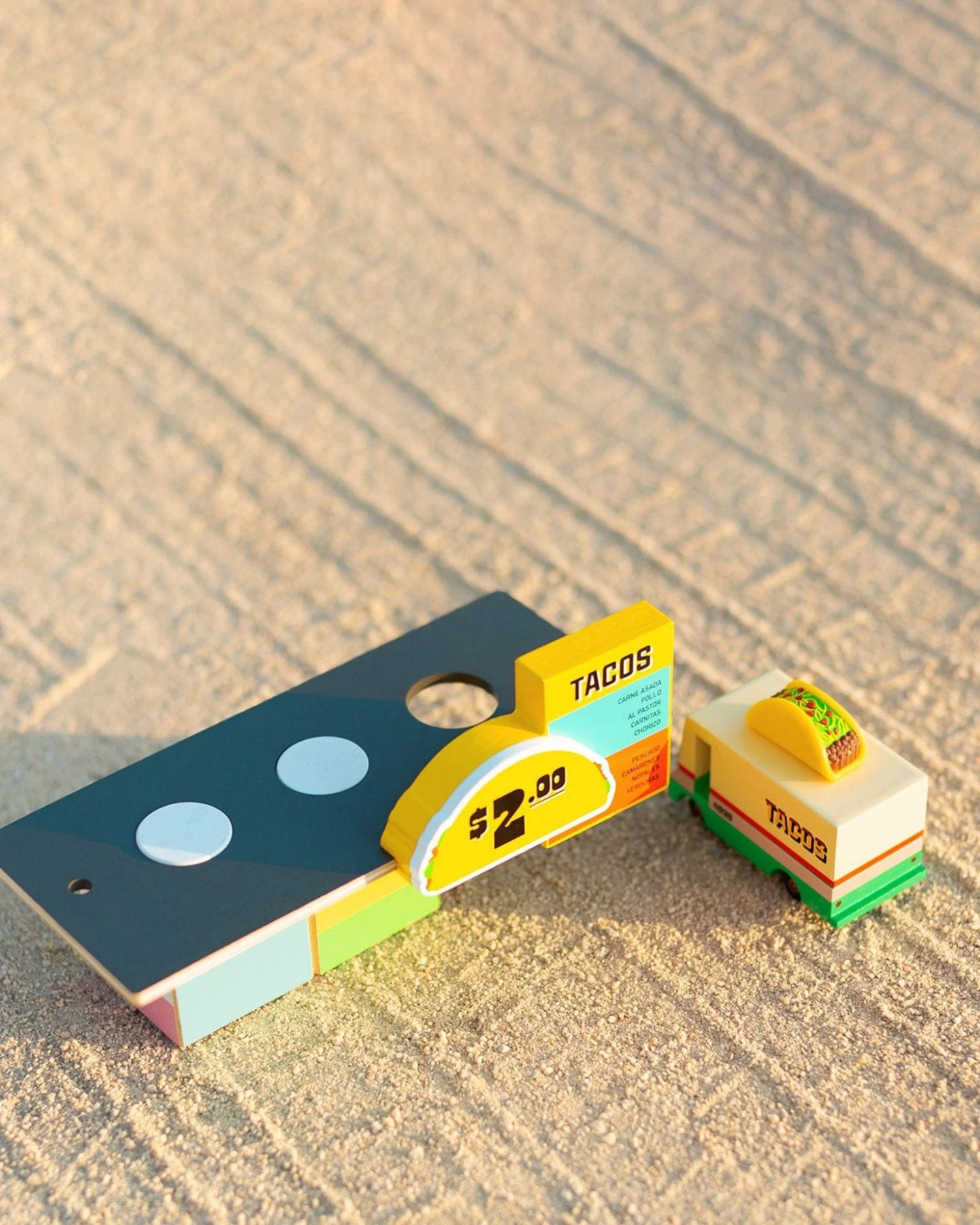 You know by now that Candylab worships the Taco Truck. So much so that they decided their business needs to expand with a proper Roadside Shack. This Taco Food Shack is scaled to work with the entire Candycar line. A step-by-step manual is also included to help with setup.