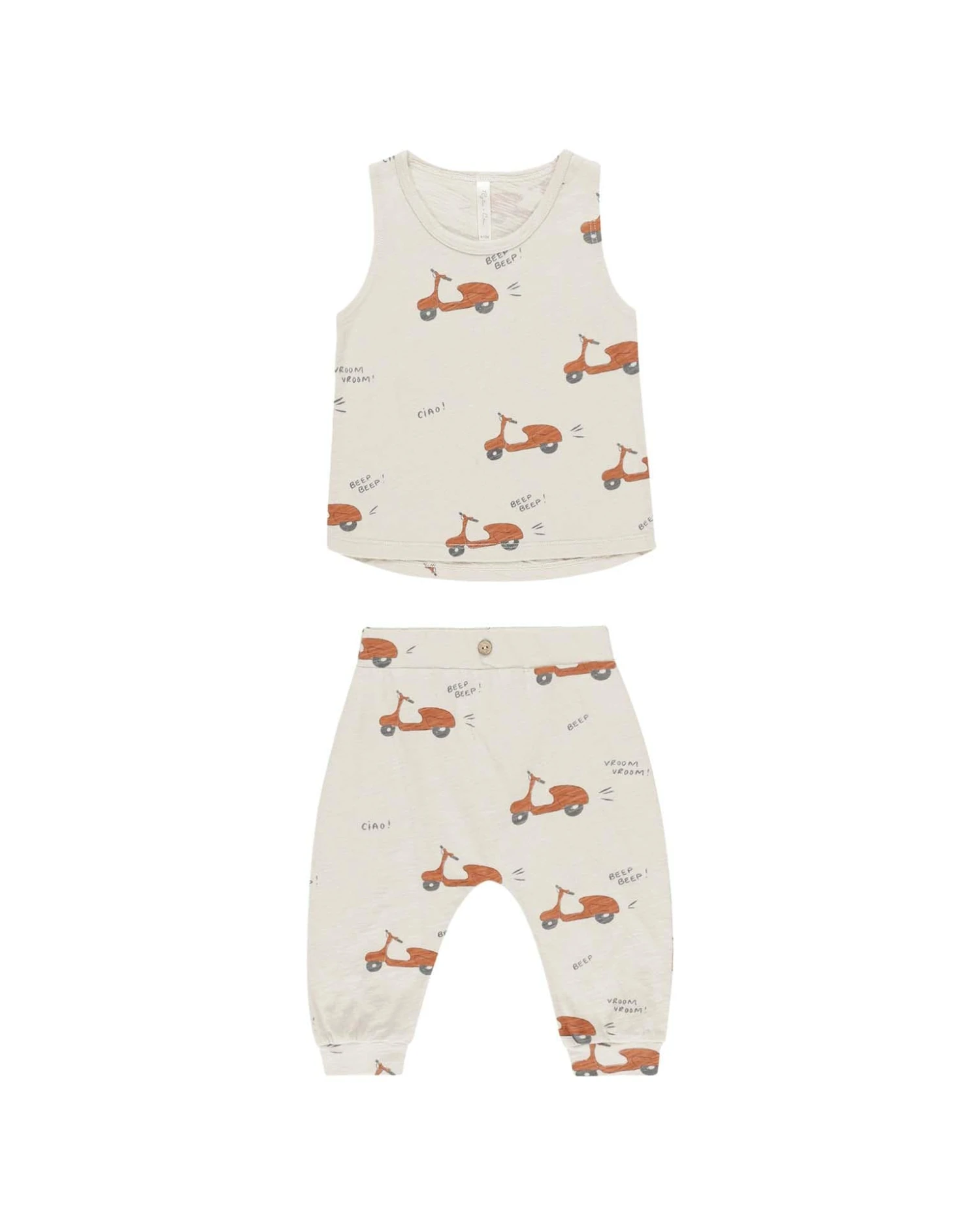 This ultra soft cotton jersey set comes with a sleeveless tank and coordinating slouch pants with summary detail. Zip away to summer adventures in this fun look.